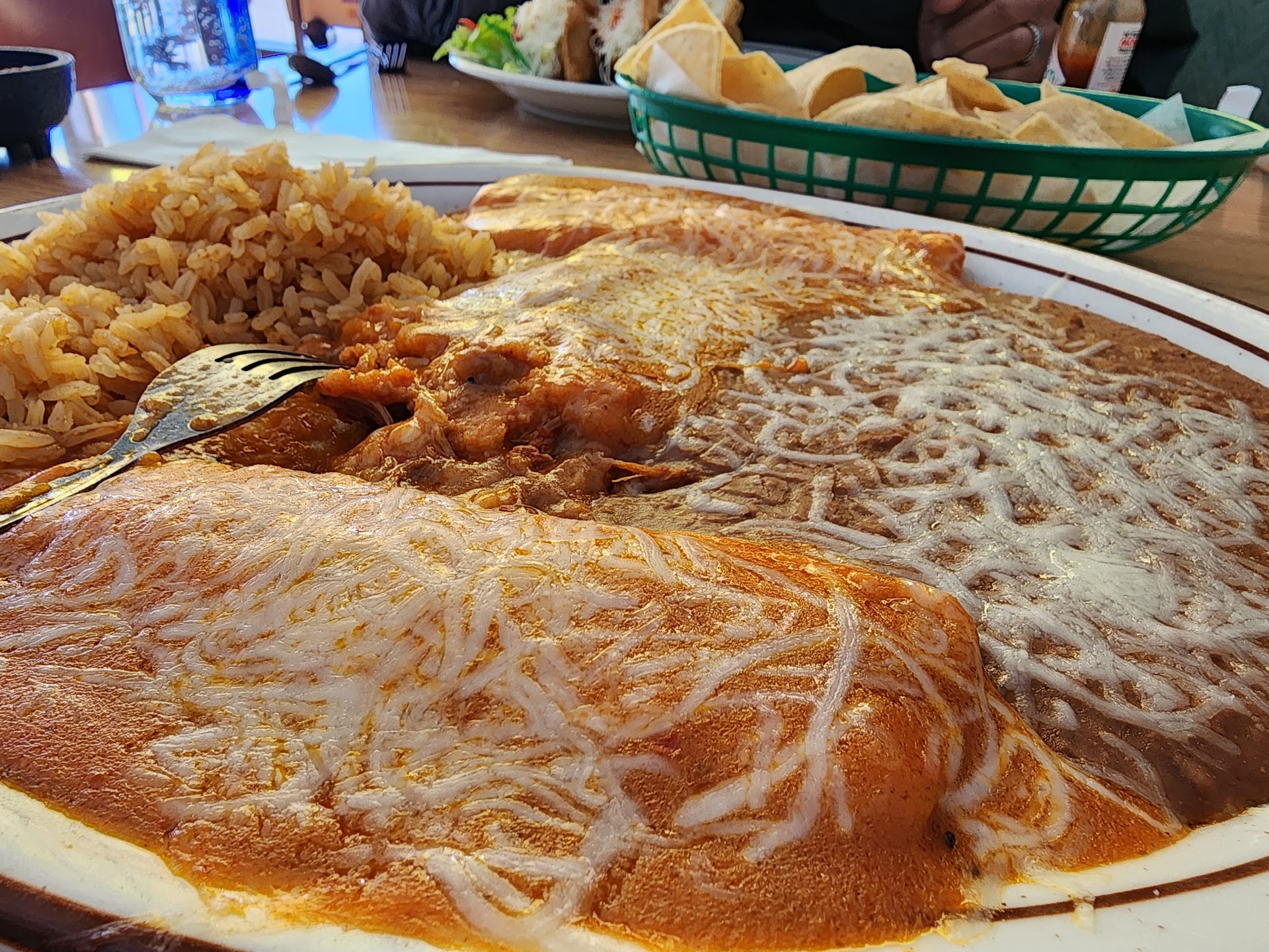 Read moreAbove all else, what makes or breaks a restaurant is the quality of the food. We stopped here to eat while in the area. Since I'm Mexican I'm pretty critical when it comes to mexican food. The food did not disappoint. The portions were good, flavor was outstanding ( I'm not a big bean fan, but these were right on the money as was the rice) table salsa was good, and the place was clean. What I really appreciated is that they brought a small salsa bowl for each person, something you don't regularly see. Usually there is one small bowl everyone needs to share. The chips were warm, nicely seasoned, and crispy. The waitress was not very efficient and was slow to take our order so someone from the kitchen came to help. The lady from the kitchen turned out to be a kind and excellent waitress. Because of the slow waitress I was expecting our food to take forever, but I was gladly wrong. Our food came out in a timely manner. The young man assisting in the dining room was also outstanding. He was very attentive. The margaritas I saw others drinking looking very inviting, but, alas I had to drive and had to pass. I saw a couple order a second round .....darn! Next time. Both my son and husband agreed that they would return to this establishment. My son ordered fish tacos and shrimp tacos with french fries. Tasted his fries and they were good and crispy. They came across as homemade since some still had the skin (which I like) and were meatier than most french fries. He gobbled up his tacos and didn't complain so they must have been good. My husband and I had burritos. He had a carne asada and I had carnitas. I had the combo with ranchero sauce. The sauce was green so I think it was a misstep, but I'm not complaining. It was delicious! The carnitas were right on the money. My husband asked for extra spicy salsa on the side since his mexican tradition demanded that everything needs to be super spicy. I don't know from where the sauce originated but it must have been good because my picky husband consumed most of the sauce in the small bowl that was brought out. What impressed me was that it was house made and not some bottle. Boy! He lathered that burrito with that sauce and happily consumed it. It was funny. Will definitely be returning if ever in the area. Gotta try that margarita. If I were to make any suggestions it would be to...