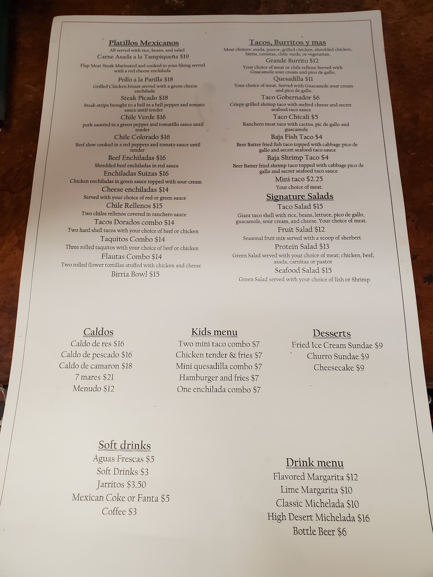My husband & I were on our way to another restaurant and noticed this one. I wish we had kept on driving pass it. Looks nice outside and inside but the food was super lacking. The menu choices are very small. The chicken they use is leg and thigh meat so my choices were limited to beef. I don't like seafood and only eat chicken breast. I chose the beef fajitas. The beef was as tough as leather literally. I tried to chew it but had to spit it out. I tried a couple more pieces with no success. That whole batch was terrible. My dogs probably wouldn't have even liked it. Once the waitess was available I told her my experience, she was very apologetic several times apologizing, however it wasn't her fault with the type of beef that was being served. She said she'd take that plate off the bill. I agreed to pay for the rice and beans which were super small portions which maybe could have be charged at 4.99 not 9.99. Shucks the fajitas were 20.99. My hubby said his food was just okay. His beef taco was fatty chunks. The salsa was salty, not much choice in a salsa selection. The salsa didn't even have a chunky style.We won't be returning here. For the prices being charged they definitely need to offer more and improve the selection of meats to serve their customers. They've been in business for 3 years. Maybe the karaoke 🎤 is the part that the customers like. There's no alcohol being served because the liquor license had expired and they needed to renew. I don't know what's up with that and why a business would allow a license to expire. Lots of people may enjoy a margarita 🍹 at that type of...