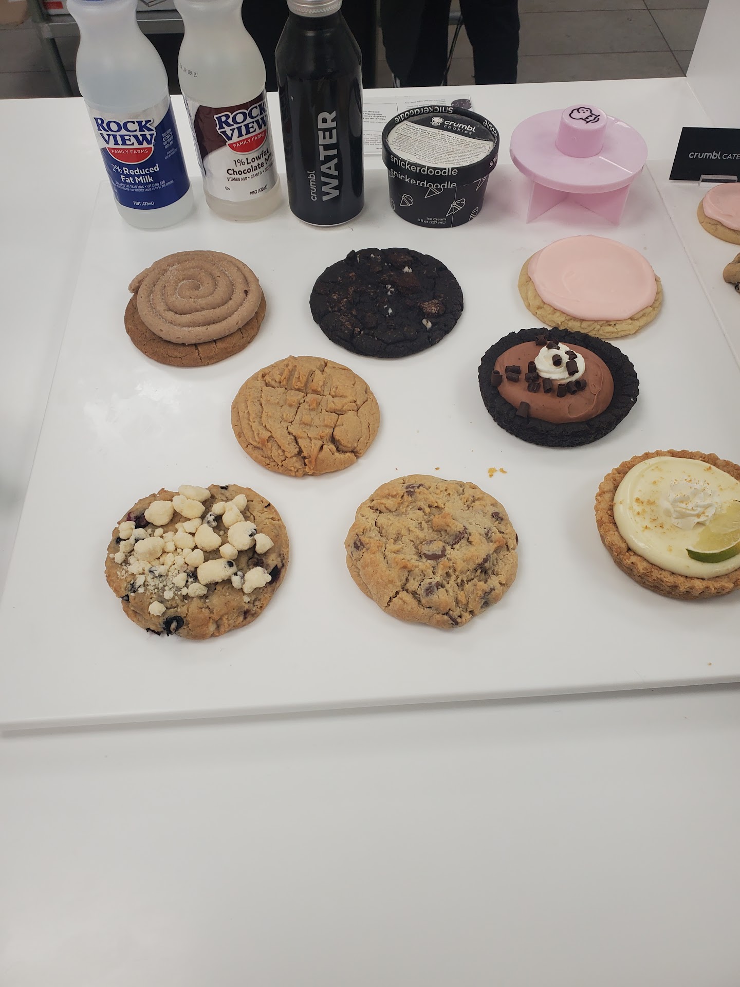 Read moreI've gone to this Crumbl location many times. Whether it's picking up Door Dash orders, or just going to get cookies for myself, I've never had a bad experience here. I love that you can place your entire order on their little kiosk thing, and they're so fast that they're usually calling your name before you're even finished. It's adorable that they always show you the cookies and ask if they look ok, before handing them to you. As for the cookies themselves, I've never got a Crumbl cookie that tasted bad, though I've learned that I strongly prefer their warm cookies to their chilled cookies. I've seen people say that these cookies freeze nicely, but they get eaten too fast in my house, for me to personally test it. They do reheat nicely though. I throw them in the microwave for 15-20 seconds and they come out perfect. I highly recommend getting one of their little cookie cutters. It divides the cookie into 4, easy to eat pieces. Perfect for sharing! I've never tried their ice cream (this location has had no other flavors in stock except snickerdoodle for a few months,) or their milk, so I can't comment on those. The store itself is always perfectly clean, and the workers have always been super nice. I love that you can do curbside pickup here. I just wish Crumbl was open...