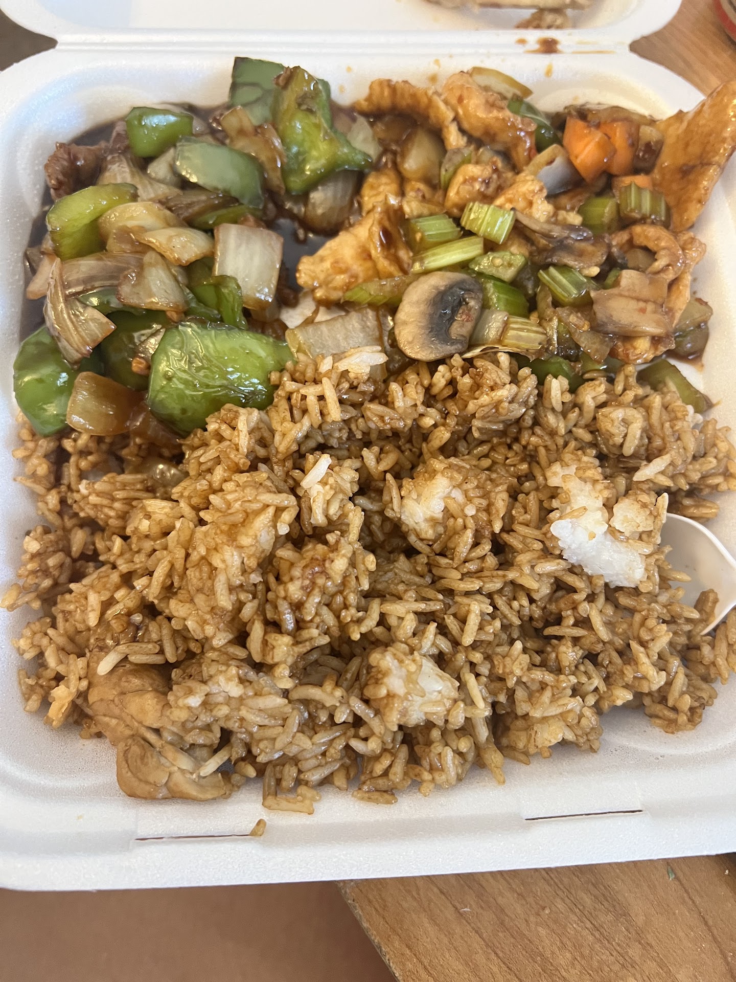I ordered the Beef and Vegetable plate without the cabbage. And added bamboo shoots plus a tab bit of hot spice. Didn't want it to be too hot spiced. Followed up with 2 orders of vegetable egg rolls, fried rice, plus white rice also comes with the meal. Spent about $61 and change plus tip.