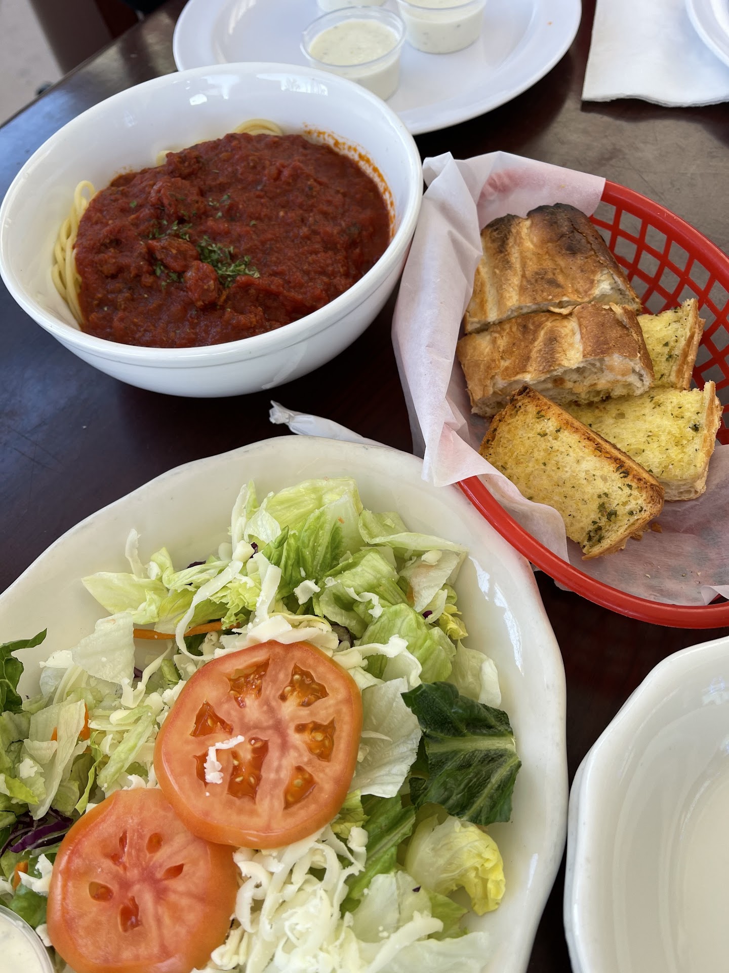 Read moreThe decor inside, atmosphere and music are all ok and make you feel like you're in an Italian restaurant. The server was pleasant and attentive, where they fall flat, I mean MAJORLY FLAT, and the most important part of any restaurant, is the food. I ordered the eggplant parmesan dinner and a to-go order of Italian donuts. The eggplant parmesan is completely inedible and might I add pre-FROZEN and not handmade by the store. It was all breading and I couldn't detect ANY eggplant in the whole dish. It tasted like freezer burn. The garlic bread that came with it was basically a hot dog bun cut up with butter and garlic on it and was honestly the best part of my meal and the only item that wasn't soggy with the exception of my salad which comes out of a bag anyway. The eggplant parmesan arrived to my table completely soggy and tasted like bland breading, oregano and not much else. The tomato sauce is disgusting and would have any dearly departed true Italian grandma turning in her grave. The donuts did not have that light outer crisp or inside fluffiness from a freshly made Italian donut. These were also pre-frozen and arrived to my table soggy. I had to take them home and put them in my air fryer to try and salvage them. I didn't expect fine dining, but seriously there are way better places here and I'm truly curious how this place stays...