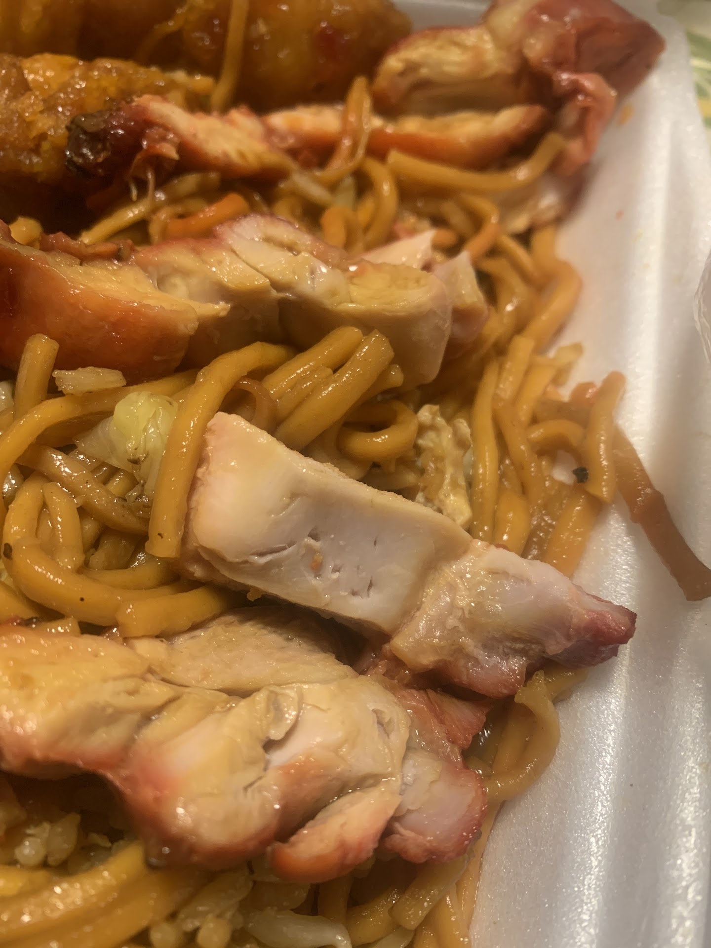 Not going to lie when I seen the reviews and the pictures I was really excited for this place . First time giving it a try, have 1 year that we moved up from LA and had not given them the chance and I low key regret doing it .. food is served by bunch unfortunately some of it isnāt even cooked properly. Like my teriyaki chicken, had to throw some of it away because the chicken was pink and my fork couldnāt even go into it chewy and tasted raw needed atleast another 4-5mins on the grill .. spicy orange chicken isnāt all that big of a deal cheaply made with allot of flower but not much chicken. The beef and broccoli was disgusting you could taste the nasty burned wok they used to cook it on we dumped all that meat out.. the wings are dry as hell and some had broken bones. Iām praying right now that I donāt get sick from the little I consumed, definitely wonāt be coming back here the pictures I posted are how the plates are left and most likely will be going to the garbage waste of 50$.. donāt waste...