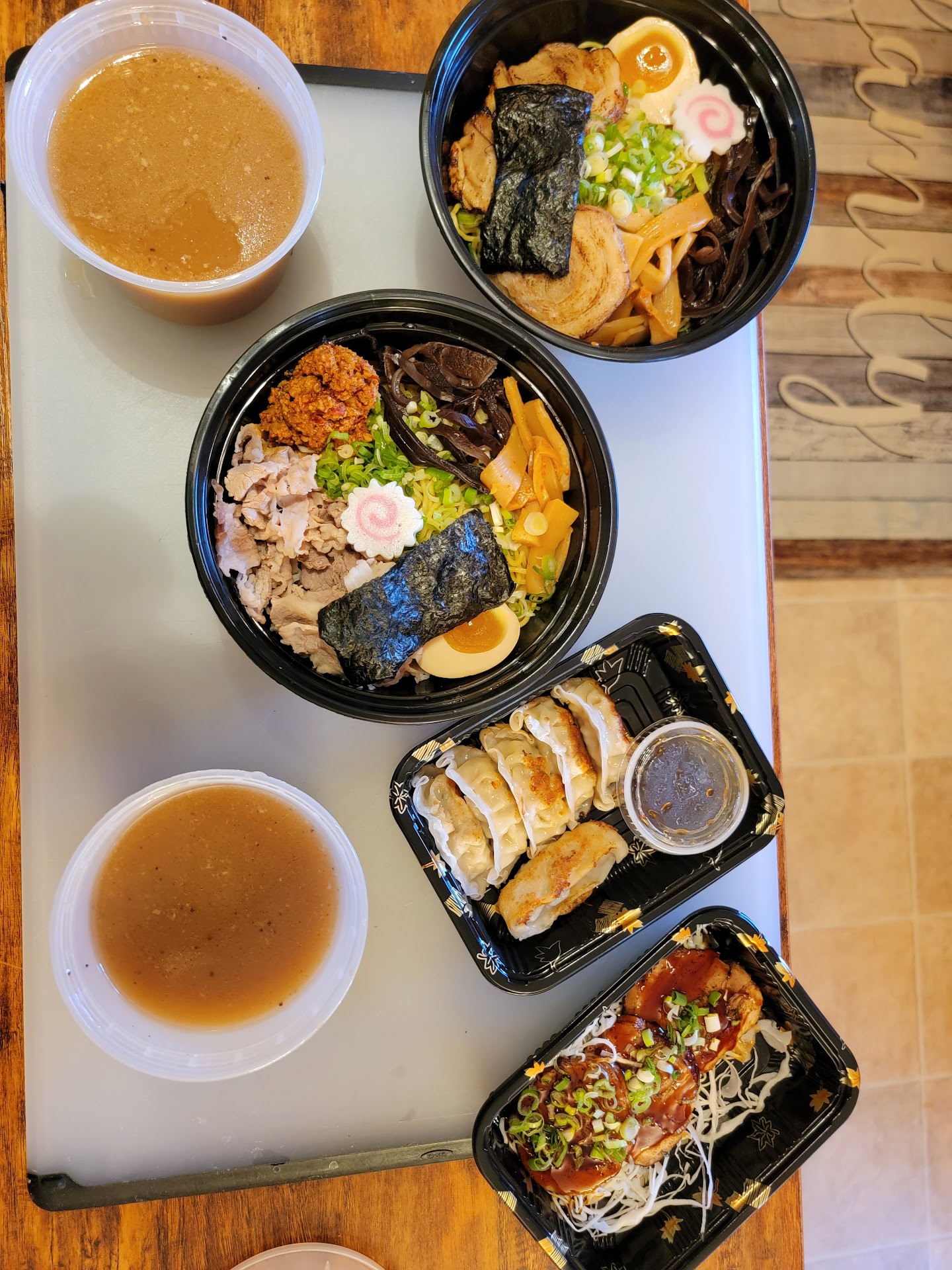 The order took a little longer than the website said as the site seems to default to 15 minutes no matter what. I ordered Char siu Ramen and Beef Ramen. Gyoza and roasted Char Siu.