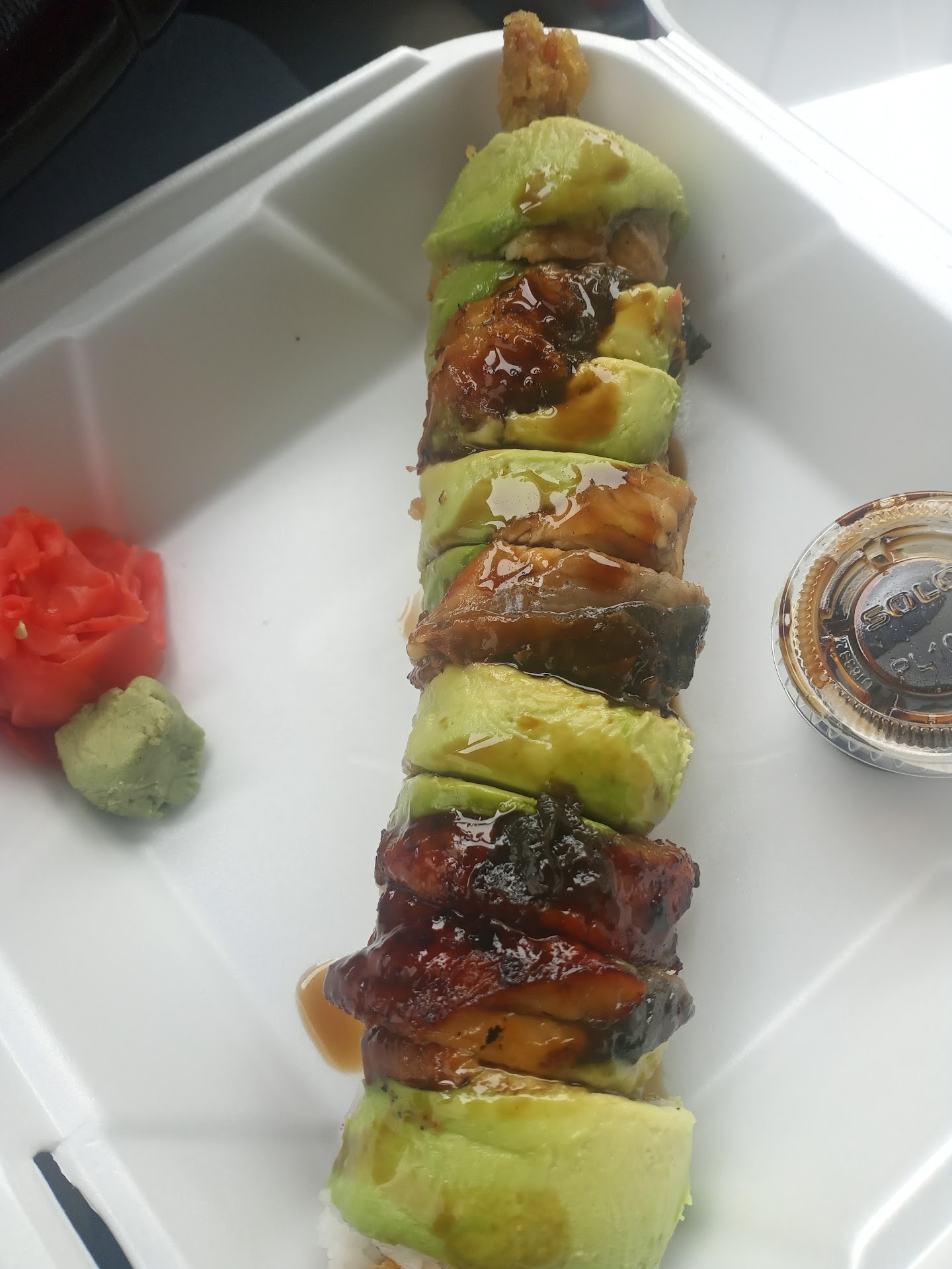 The rainbow roll that came with the boat was lacking. It was loosely rolled and just a mess. You can pick it up with your fingers and it would still unravel. Way too much rice as well which may have contributed to how loose it was.