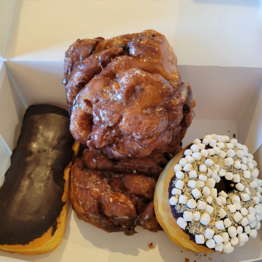 Cozy, clean, friendly, and welcoming as I walked in. They offer a very small area for people wants to enjoy their doughnuts/drinks there. Doughnuts are soft, fluffy, chewy, perfectly sweet for us. Crisp in the outside and extremely soft in the inside Apple fritter offer small pieces of apple in every bite. Mild sweet with double layer berries jam filling doughnut was a total surprise was in point . Maple syrup , chocolate w/ sprinkle, m&m doughnuts were my little one’s favorites. Cake doughnut was great with great amount of chocolate glaze and soft. Special doughnut with crispy crunch was the bomb, crispy crunchy on the outside with soft on the inside was great. Overall their doughnuts are great, they were even tasted great a day after. I can’t wait to try others on their menu. Highly...