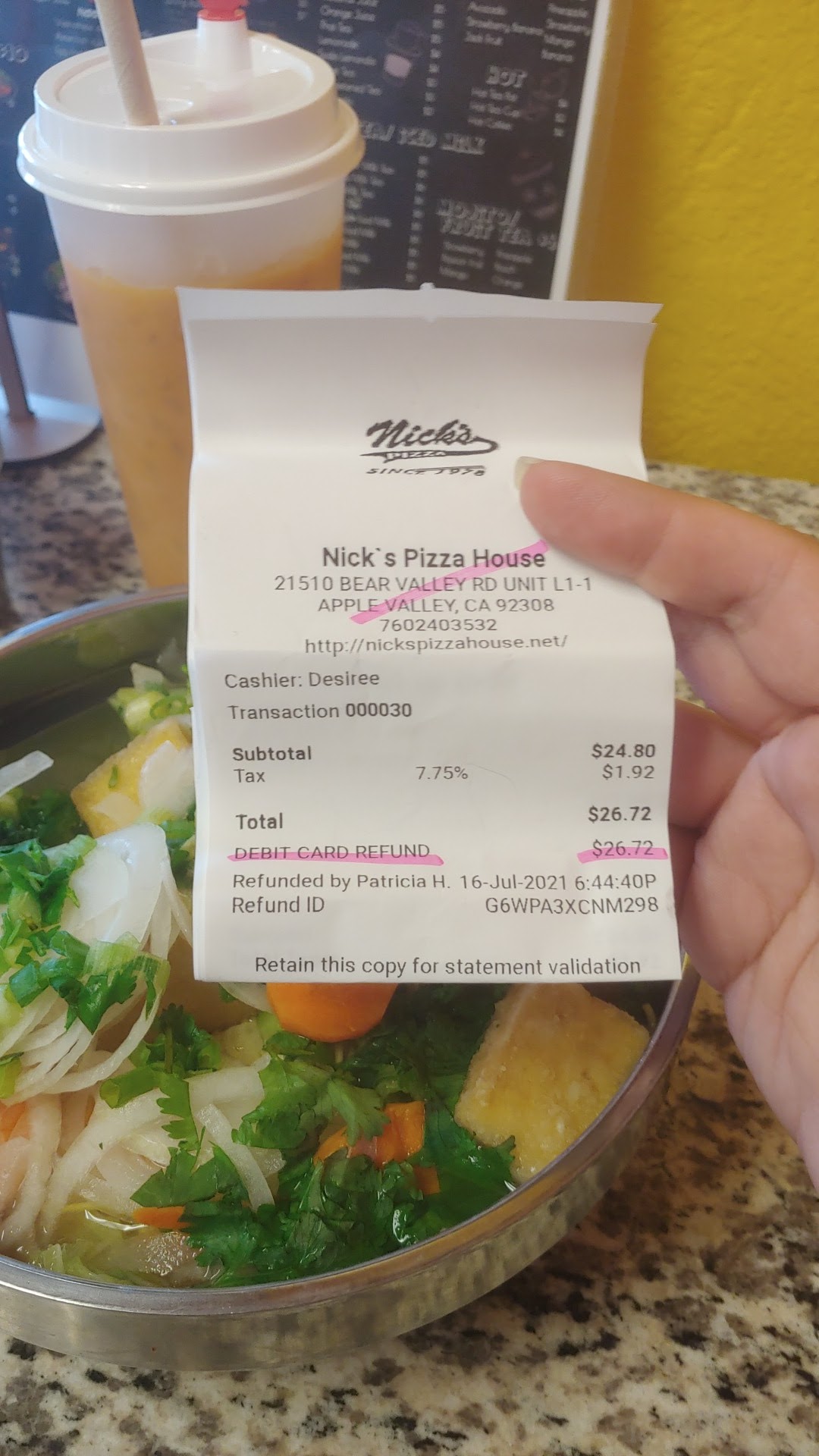 Read moreI honestly don’t leave reviews very often but I couldn’t just let this one go, about a week ago I ordered online… for one my order kept getting cancelled so I caved and downloaded the app and order there instead I ordered a fettuccine alfredo pasta with a chicken the chicken was extra so I paid also got bread sticks and a small pizza. I waiting close to an hour went in was greeted and served I won’t disclose the employees name but he was professional and courteous I ended up talking for a bit and paid for my order I even left a tip at that point I was happy with the service provided. But when my family and I sat down to eat we noticed no chicken in site, I called and the refunded the chicken portion of the order which was reasonable but as we continued to talk he the employee in question said come in and I got you to which I responded to it an awesome I’ll let you know when I’ll be by. A few days ago I called and they found a note stating something about refunding the chicken portion of that order but advised that they would not be covering the meal because I was refunded 4-5 dollars so I went ahead and paid for another order out of pocket( the woman who served me was extremely rude about the whole ordeal) So I asked for the gentleman’s name so I could go when he’s was there I finally get ahold Of him only to be told we refunded you the chicken… that didn’t included my time and effort and not only that I guess I got you mean’s different things to different people. He shouldn’t have said I got you if he...