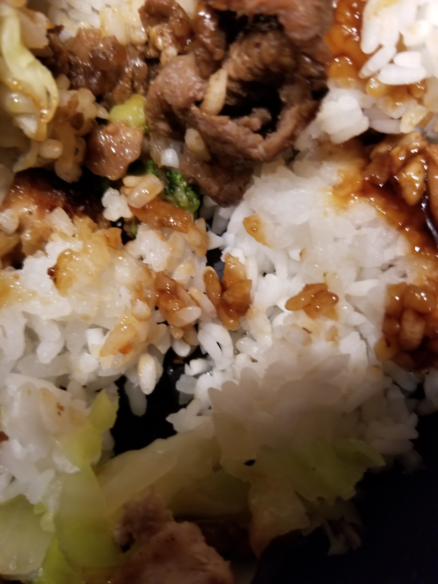 The food arrived and it wasn't what I had ordered. After informing the worker and hearing my options, I stuck with what I received. The chicken had a rough chop and not what I have received from other Waba Grills in the past. Wasn't offered green onions! Gotta have those! Lol.