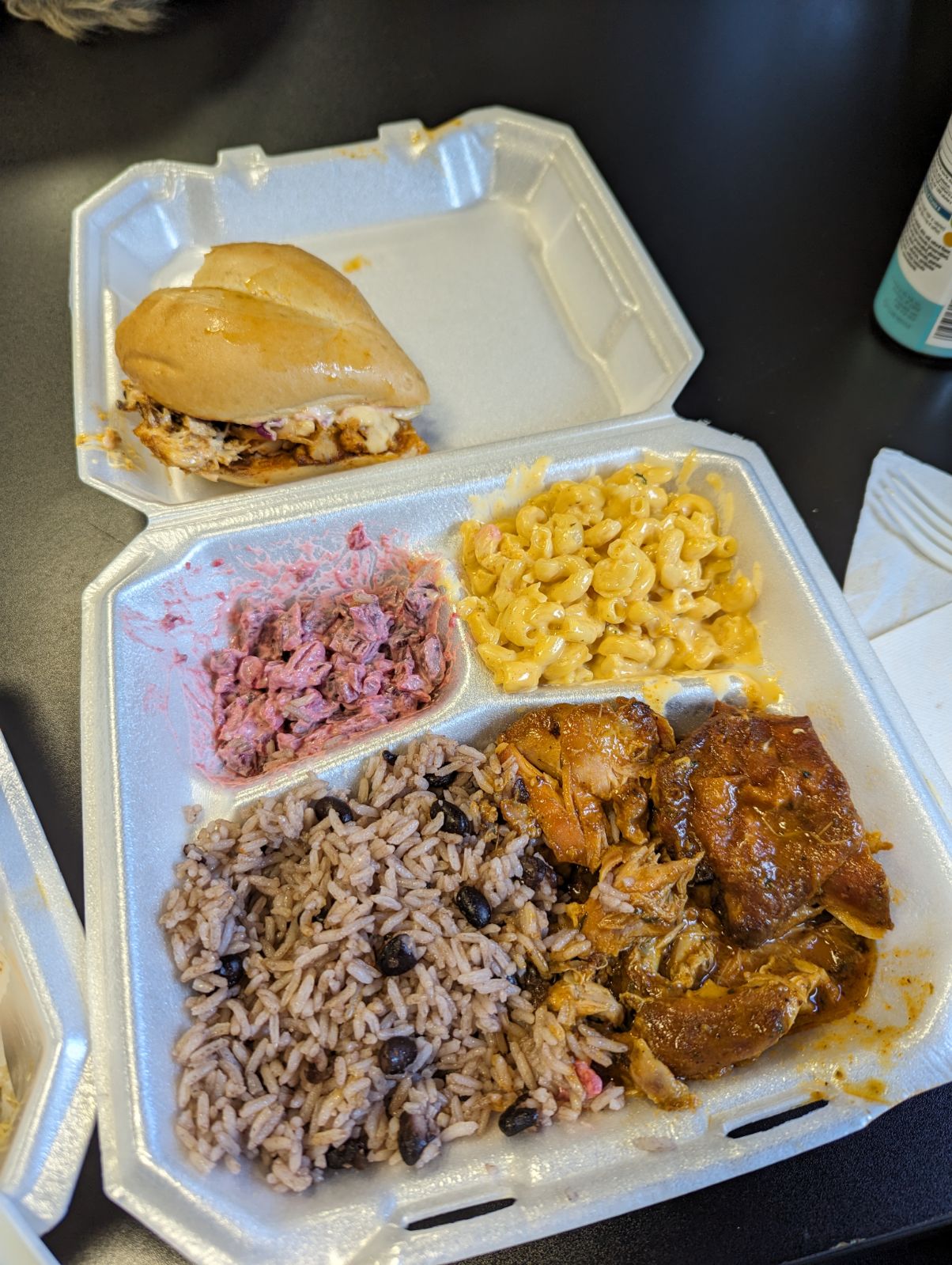 Read moreA wonderful surprise tucked away in Appleton. We were greeted with a smile right when we walked in the door. The food was fantastic. We tried two dishes; the Mango Lime Chicken Meal and Jerk Chicken Sandwich. The portion for the meal was huge. I only ate half (my husband ate the rest). The meal came with three sides. We chose the beet salad (cool and refreshing), rice and beans, and creamy, gooey jerk mac n' cheese. The chicken thighs were flavorful and fell off the bone. So tender! The rice was perfectly cooked. All of the food was delicous. The jerk chicken sandwich was spicy, while still having great flavor. We didn't save room for rum cake, but if the dessert is anywhere near as good as the entrees, we will have to try it next time! Four stars for the atmosphere because the place is quaint and still getting some finishing touches put into place. It was clean and...