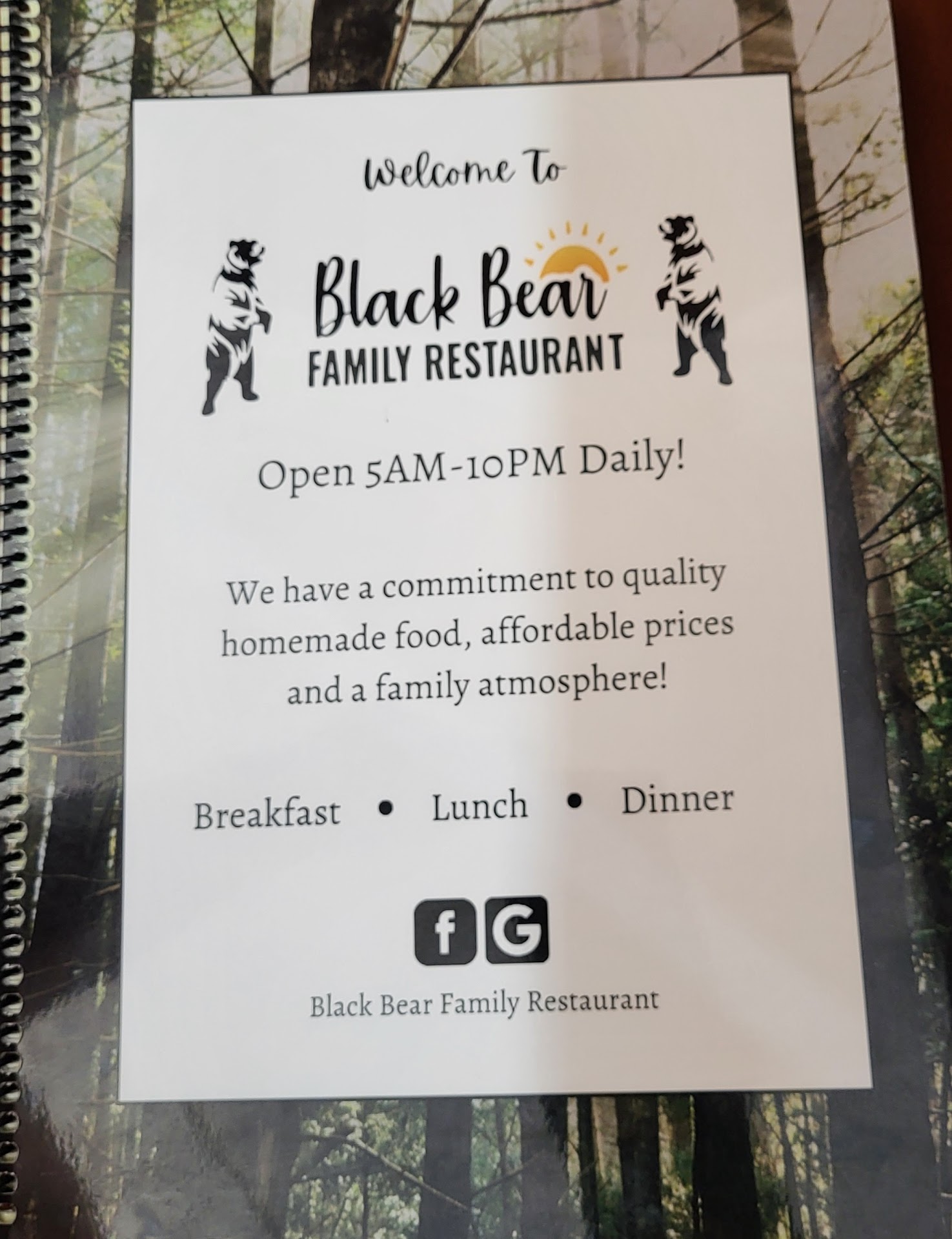Read moreThis was our first time visiting this restaurant but not this location. Black Bear reopened what was previously a diner as well. We attempted to visit the past weekend but could not find any parking available. I believe the diner has a lot more capacity for customers than they may have for parking. As such, if you can manage to park, I do not believe you will feel crowded inside. On this day, a Thursday morning around 9:30, parking was still at a premium but there were perhaps 4 spots available.
