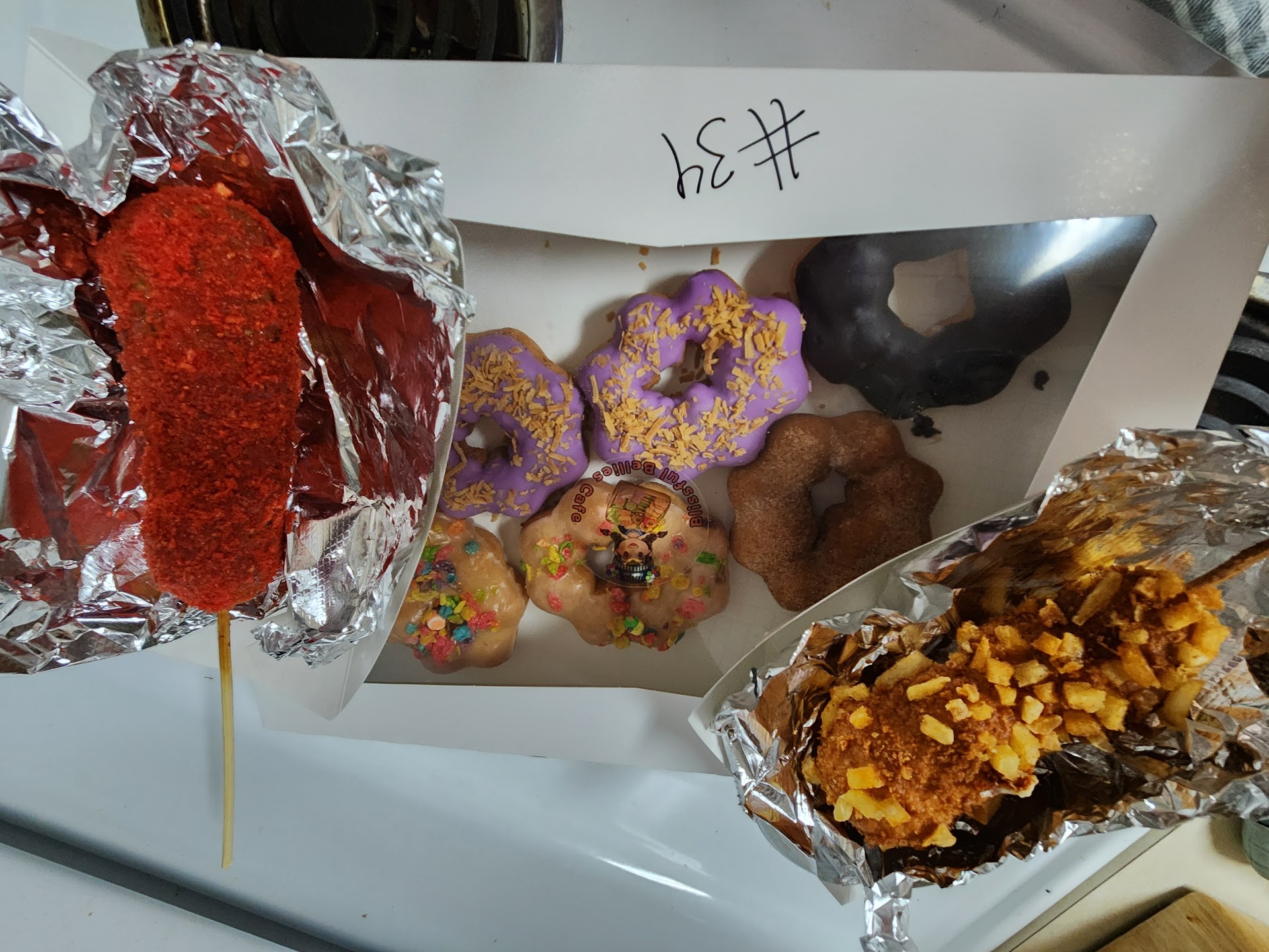 Read moreThis place is super cute!! I ordered the glazed pebbles, coconut, cinamon, and chocolate donuts and of course 2 korean corn dogs. One was hot cheetaohs and the other one potatoes. Everything was delicious. Can't wait to go back and try other items on the menu.