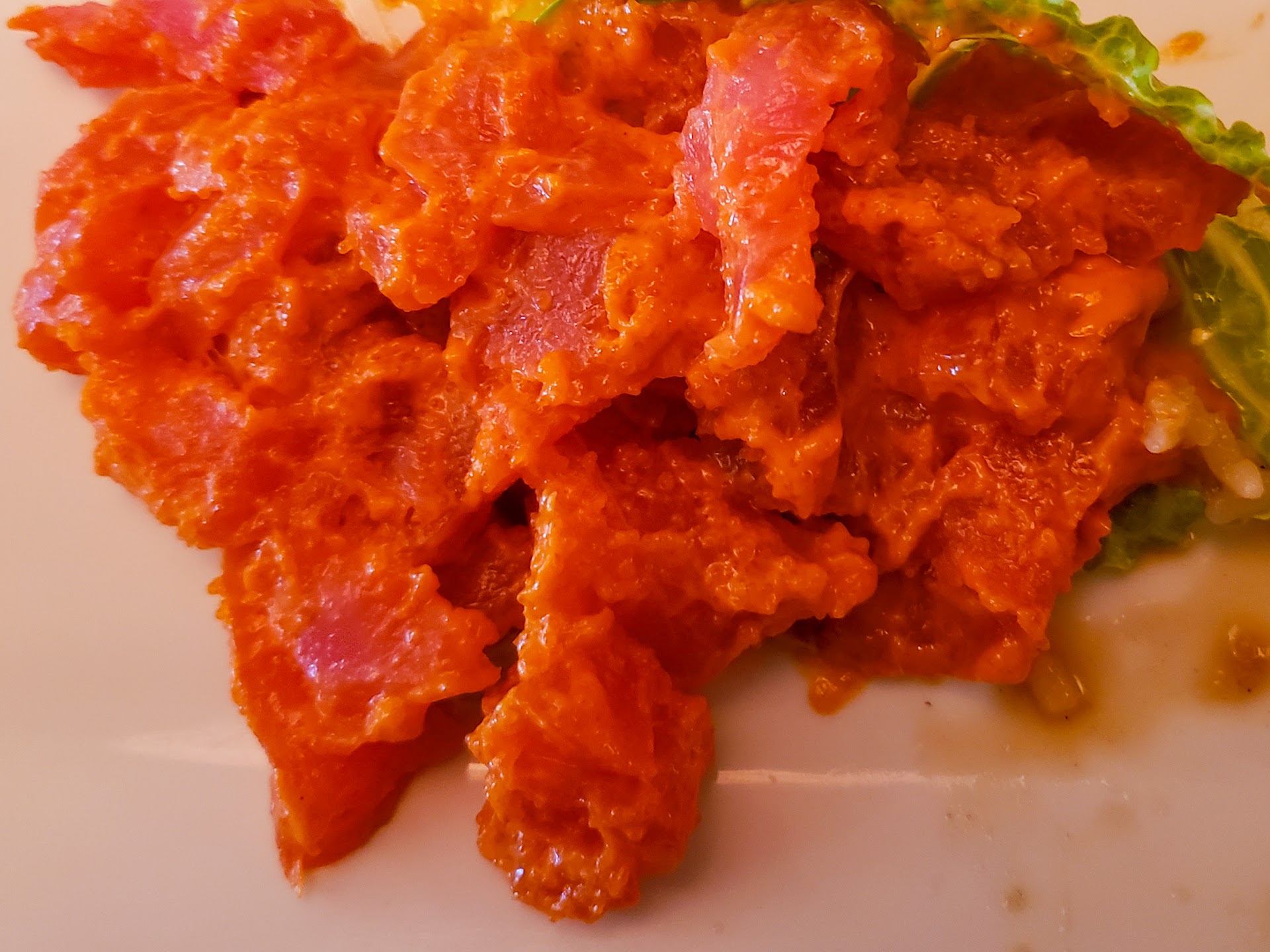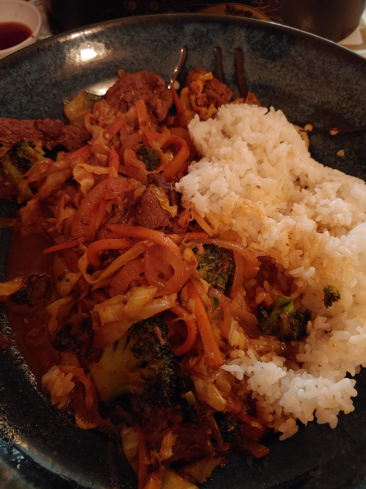 First, I have lived in the area for 27 years and never stepped foot in this spot I now consider Appleton's biggest secret. I have been missing out! We walked in on a Wednesday evening and were seated right away. The gentleman working behind the bar was also our server. In fact, I never saw another staff member but we never felt we were not receiving the attention one expects in a restaurant. The dining area is small. The bar is adequate for perhaps a dozen people?? And the menu selection was good. I ordered the Chicken Bul Go-Gi Bento Box Dinner. I enjoyed everything immensely except perhaps the chicken. The flavor was fine but the chicken was too dry. I did not reduce my rating one star as I typically do if everything is not excellent because everything else WAS fantastic. I'm not sure what I will order when I go back but I will go back. Our party of four spent about $100 mostly due to the amount of sushi we ordered.