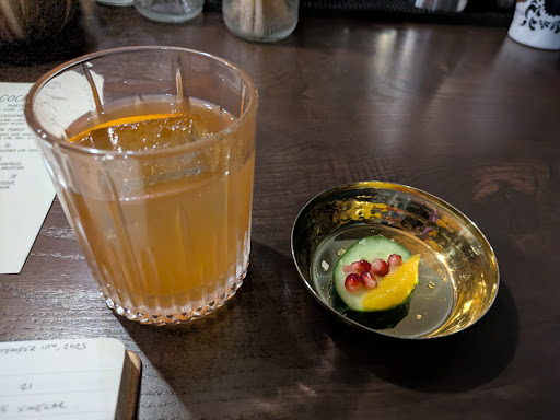 Read moreDecided to check this place out and didn't see any open reservations so decided to stop in earlier in the evening to see if they had any availability. Fortunately they were able to fit us in between some other reservations and was glad they did. The menu changes every week or so. We had the oysters, salmon, dip, affogato, and candied pecans for food. They were all very good and different than things you can get in most places around here. For a drink. I had the old fashioned and it was one of the best I've had. It even came with a little side that you could eat alongside sipping. The ambiance is really cool inside and unassuming from the outside. It's a good bit smaller than I expected, with only three two top tables, one four top table, and four seats at the bar. The ambiance inside and the service we're both great. Certainly a great addition to the neighborhood and great place for a date night. Highly recommend checking it out. Just make reservations as they fully book out, but don't be afraid to check last minute by calling or stopping by. Seems like occasionally they have some dead times to squeeze people in or last minute...