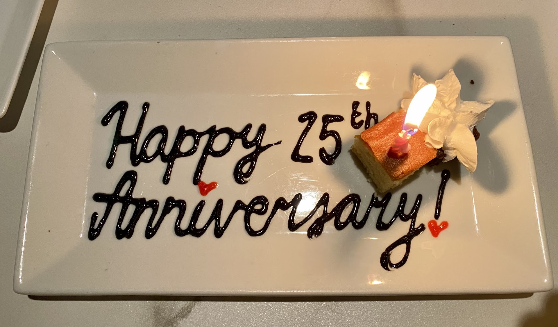 The final straw was when an employee's child started going between the managers office (next to the host station) and the kitchen door, running back and forth constantly (almost knocked over our server when she was bringing out our chocolate) and chanting a line from a comedy show that another server has taught the kid and was chanting with them making it even louder. It was non-stop for about 5 minutes, and as soon as our server came back, we asked for our chocolate to be packaged to go.