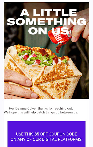I was seriously stunned by the blatant disrespect to a customer so tried to cancel my order and get a refund. However, since my food was already made it would allow me. My friends came back to pick me up and decided to wait in the drive thru. I got the new $6 double steak cheese wrapped burrito and I couldn’t have been more disappointed. For being double steak, it has like 4 small chunks and the rest was mainly rice. Also there was several pieces of lettuce, which doesn’t come on this. And the cheese on the outside looked like it was just a slice they microwaved on.