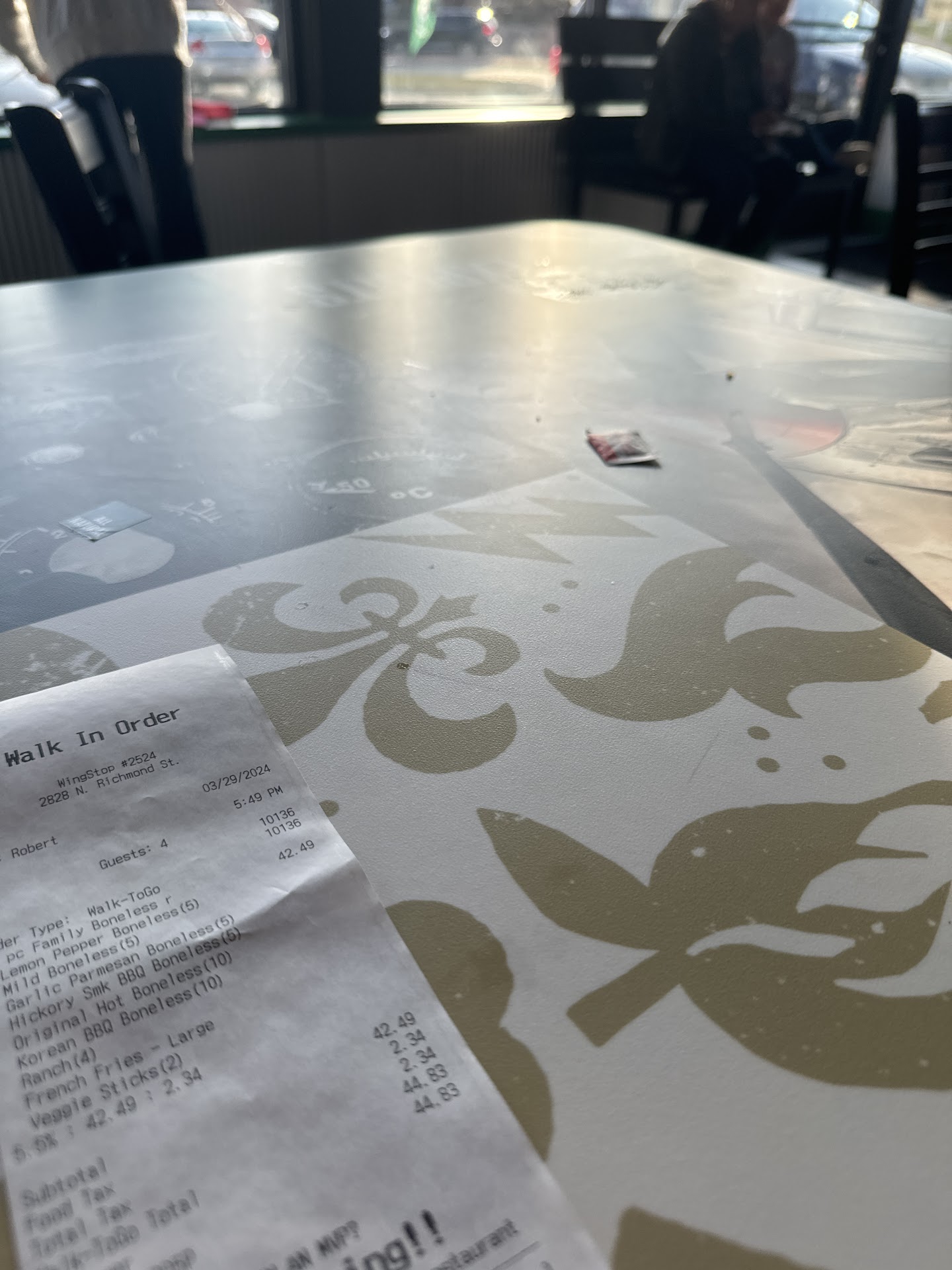 Read moreIm literally a teenage girl and have never made a google review in my life but that is how terrible this experience was. I came here once before and the wait was extremely long but other than that it was fine. But today, I mobile ordered and then waited 2 hours on top of the half hour estimated wait time. The workers made excuses like having way more orders than expected making them an hour behind. But based on previous reviews, this happens all the time so they need to expect it and change the estimated time. Also, they were more like two hours behind not one hour, which would have been nice to know before I wasted my entire evening sitting there. Also there were 4 total workers and one of them just stood there and another one was on his phone? Then I thought I finally heard my name so I looked up but someone who had just walked in already took the bag. But then a few minutes later that guy came walking back in with a bag and I saw my name on it. He brought it up to the counter and just stood there with it. So basically, this guy walked in and assumed the first order there would be his, without even checking the name on it. He must have realized it wasn't his after probably digging through it in his car. I went up to the counter and said that I was pretty sure it was my name, and sure enough it was my order. Then the food wasn't even that good, it was lukewarm and made me feel kinda sick after eating it. And the entire place was a mess with people's garbage everywhere and there was not one clean table to sit at. Behind the counter there were fries all over the floor and everything was just dirty. This Wingstop needs to hire more people or people who will actually do their jobs. And then the workers need to actually verify people with Doordash orders because they let this random middle aged guy take an order with a girls name on it? I honestly don't think I will come back after...