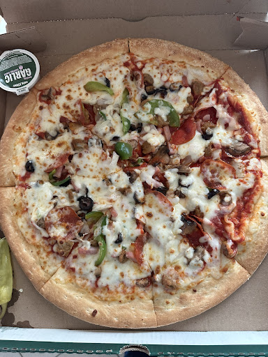 Order a pepperoni pizza Thursday 10/17/24 i had put extra pepperoni 🍕 also on the pizza so my pizza said it would be ready by 7:17 I went inside at 7:20 my pizza still wasn’t ready grant you I had points from previous orders so my total was $1.76 I still tipped them and asked if my pizza could be kept in the oven to be well done because I wasn’t sure if I added that to my online order he said sure of course that was another 15 minutes so once it was done the lady kept peeping at me behind the wall where they cut the pizza at but she never cut the pizza all the way through half the pizza was sticking to the bottom of the pizza box let alone the guy that was making the pizza nails were very dirty no gloves he put a lot of sauce on my pizza when I didn’t add extra sauce I added extra pepperonis which they looked old and molded pizza was extremely hot and not made correctly they didn’t care they still served it I’m leaving this review because they pick in choose which orders to make properly get offended if you ask and long wait times and pizza still won’t made right I’m very disappointed and not satisfied hopefully they will do better job accommodating customers orders we paying our hard earned money to get a decent...