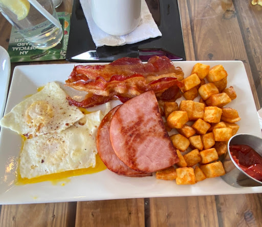I ordered the classic breakfast with added ham and a waffle. The over easy eggs were cooked to perfection, and the seasoned potatoes were incredibly flavorful and crunchy. The ham slices were thick and delicious, and the bacon was just right—not too crispy. But the real star of the show was the waffle. It was so good that I couldn't resist eating the whole thing, even though I was already full.