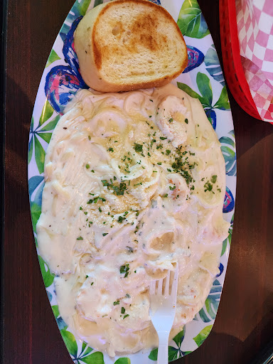 For me I had both the Shrimp Alfredo Pasta and the Gyro with Waffle Fries. I really couldn't decide so I felt forced to get both. Gyro had diced cucumbers in it, and the Tsaziki sauce was bland and missing garlic, I think, but it had no taste really at all. I asked for it without lettuce or tomatoes like normal but I would NEVER order that Gyro again here for anything. If this is the way it is supposed to be they need to remove it from the menu permanently as this isn't the way it should be at all and YES I am aware of the authentic taste and this is like 10% of it for only texture and being white. Nothing in the taste was appealingly close and I didn't eat more than about a quarter of it taking it home to get a side of sauce elsewhere to finish it. The Shrimp Alfredo was mostly sauce with noodles and shrimp. I would have loved to have more spice to the sauce but it was ok. The noodles seemed to be a bit on the smaller portion side and with so much sauce it seems more like I was shorted noodles. The garlic bread was pretty good though and kind of saved the day. Quantity of shrimp seemed sufficient.
