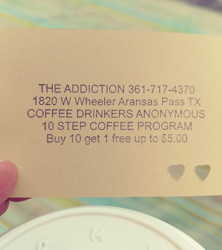 Read moreHaving moved to Texas from the Seattle area, I was sorely missing a neighborhood coffee stand. Thankfully, they've opened the Addiction on my route to work and I now have something other than horrible gas station coffee or the over-priced sludge that is Starbucks. The staff is friendly even if many are still learning and they want to make sure that you enjoy your coffee. The lot is small so if there is a queue, it can be a bit tricky to pull in so sometimes it's better to park next door and walk over. My one complaint is that the roast they have selected for their espresso is very light. I much prefer my espresso to have a very dark roast (full city plus or above, Vienna roast preferably) and I think they are using a city plus or full city...