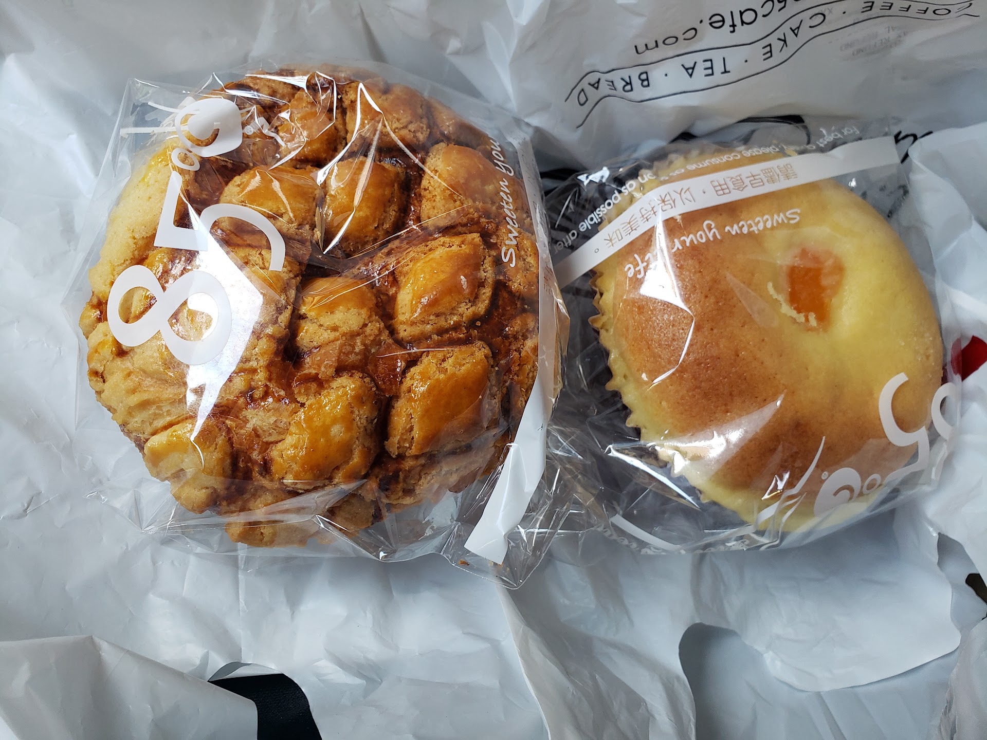 I purchased chocolate chip cookies, choco cookie bun, matcha choco bun, and two potatoes croquette. The choco cookie bun at first bite tasted okay and reminded me of cookies and cream flavor. However, as I kept eating it, it just didn't taste as good as the first bite. The top seems like a chocolate shell on top of the bread with it being coated with crumbs, which is really messy and hard to eat. I think they should have incorporated more of a chocolate flavor within the bread than to have a chocolate shell on top. The bread also seems a bit dry.