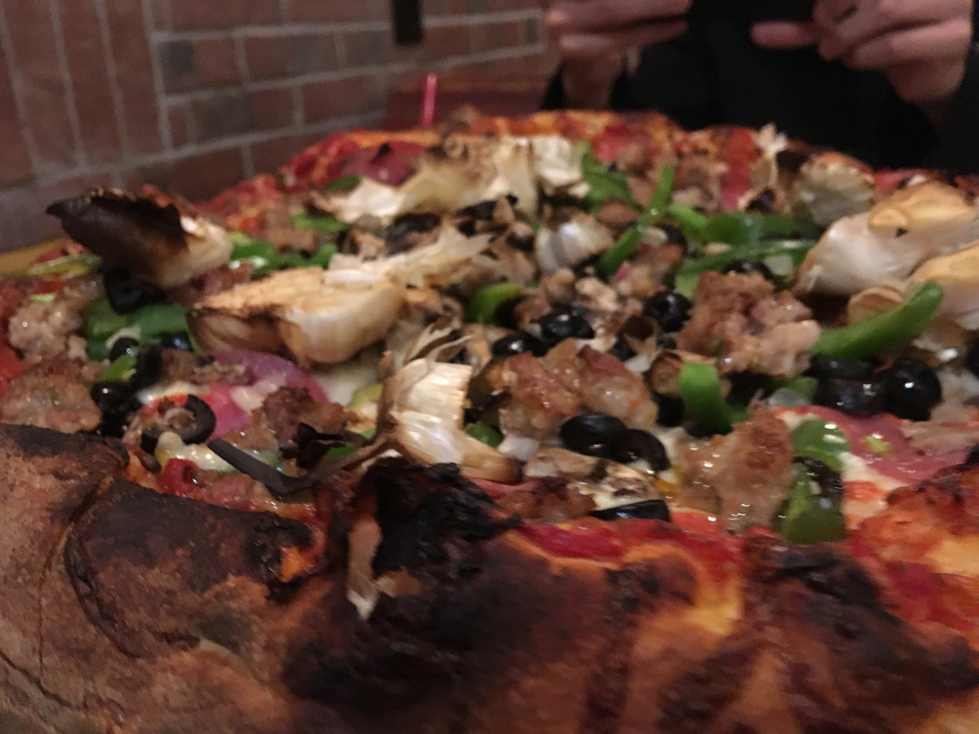 Good: the pizza was very good. Medium was a decent size to share with 2-3 people, nice amount of toppings, good taste. The dough was perfect in the right amount of flavor, density, chew, but yet a crisp at the bottom and edges. Pasta sampler was 1/2 lasagna with two pastas, we chose angel hair with meat sauce and meatballs ravioli with pink sauce. Pastas we're good, lasagna was the best. The sampler was a good size for one person to, enough to share with another but not enough for family style.