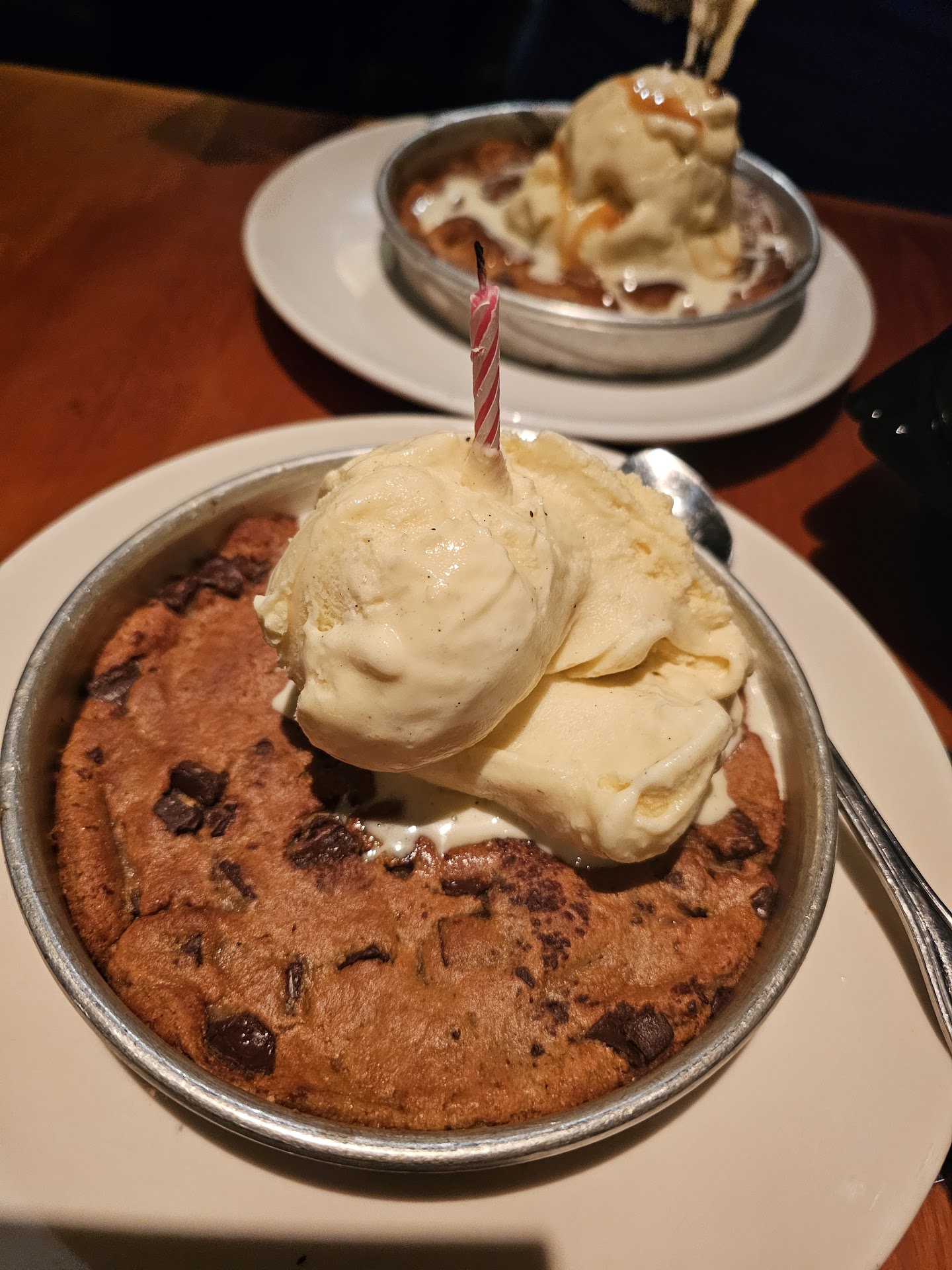 Read moreCame in on Saturday for a quick and simple bday dinner. Turns out our server Kaitlynn made it exceptional with her professional and friendly service!! It was a pretty busy Saturday around 9:40pm and the majority of the restaurant were seated with customers. Kaitlynn still went to all her tables and greet/check on all her customers. She came over apologizing for such a wait and got our orders. We ordered our usual, Avacado Egg Roll, Couscous Mac and Cheese Balls, Prime Rib, Clam Chowder, Strawberry Dream and etc. As soon as we finished ordering, our soup and drink had already arrived. I never experienced such speedy service at any other BJ's before. However, as we were finishing our soup, our Prime Rib dinner came before our appertizer (which was confusing but we were hungry and didn't care anyways!) Later, as we were finishing our Prime Rib, our appertizer came at the same time Kaitlynn came and checked on us. She noticed that our steak came before the appertizer and apologized for the service but we understand that it wasn't her fault anyways. It wasn't a big deal to us anyways as long as we get the foods we ordered. Later we got the famous pizookies and we got both the salted caramel and chocolate chunk. They were both amazing. Kaitlynn lighted a cute candle as she wishes me a happy birthday! At the end, she also wrote a happy birtdhay on my receipt!!