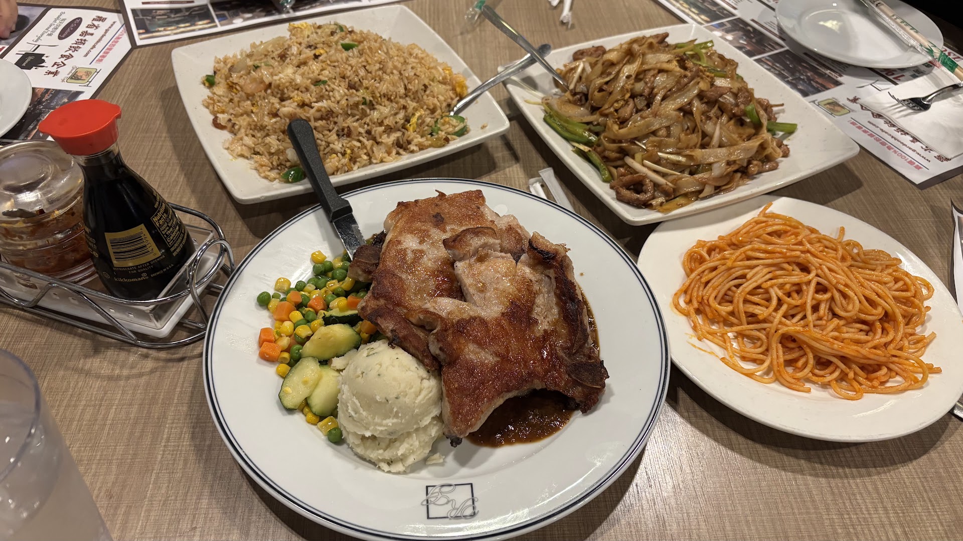 Food - They are known for their Hong Kong-style food, but they also have pretty much all different types of food from Italian to American. I think they would actually do better if they focused on their Chinese specialities. The food is Chinese comfort food. Surprisingly ok, the beef in my crispy noodles was tender, and the flavor was decent. But it doesn't stand out, 3 stars at best, and I wouldn't bring guests here.