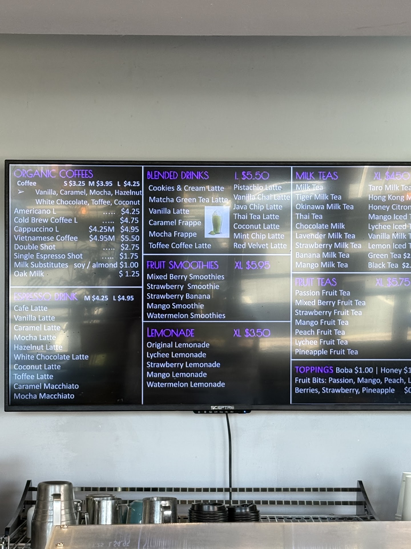 Sometimes you know you want a milk tea, so you go to the milk tea section of the menu. Easy. But when there are numerous posters/flyers with other drink options floating around, it's overwhelming to keep track of.