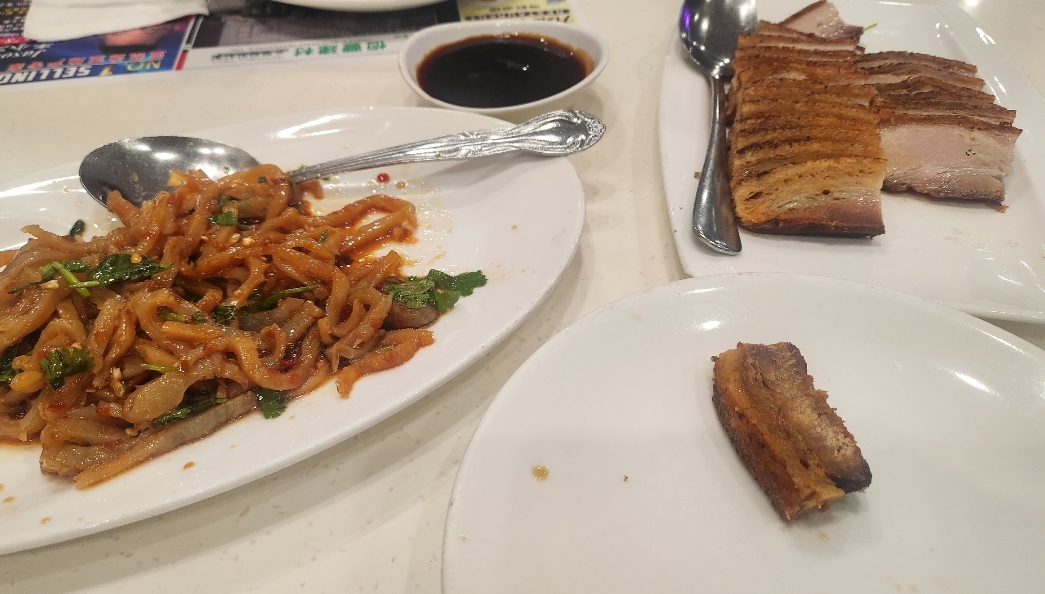 -Crispy Roasted Pork Belly: $12.25 This was definitely a letdown! We were interested in seeing how their new bbq selection would play out, and after this meal - it doesn't look too good. The skin of the pork was way too hard, almost to the point where I had to forcefully clamp my jaw down to eat it. I think they overcooked the pork way too much, probably in order to preserve the crispiness of the skin. The meat was not too bad, but that skin just was not good.