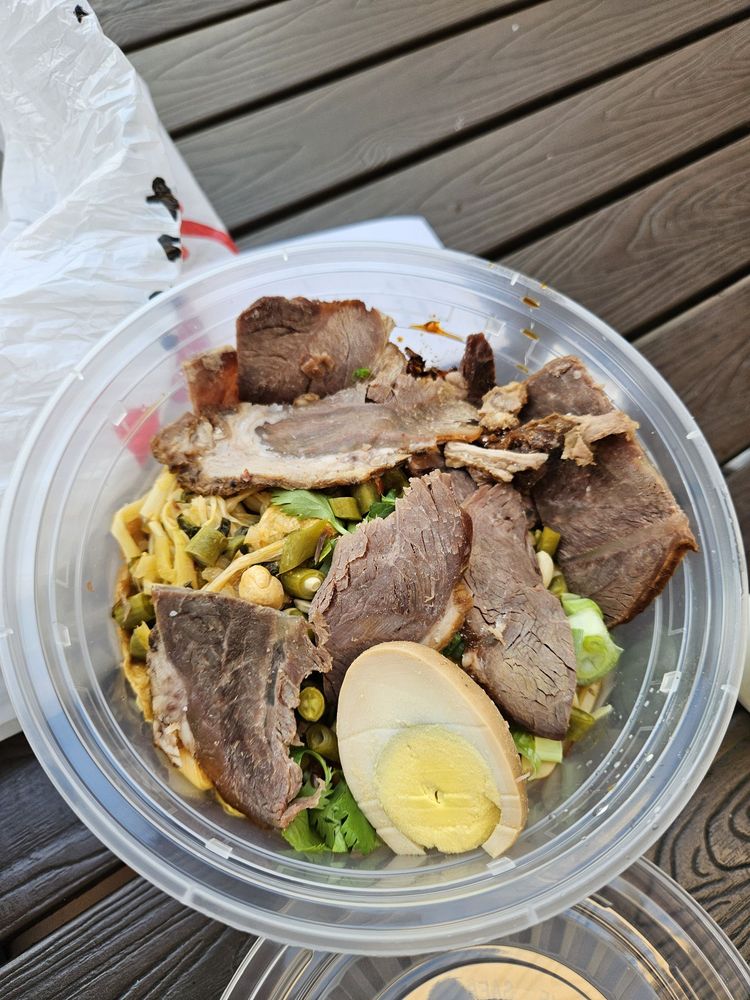 The noodles took around 10 minutes to be ready. I sat at their outside tables while I waited and the vibes were nice. The noodles were not bad but a bit bland. The sauce was more like a bean base sauce and that wasn't super good. It also came with a boiled egg and meat but the meat wasn't that good. The only good thing is the portion is on the bigger side, although I have seen this portion at a cheaper price elsewhere.