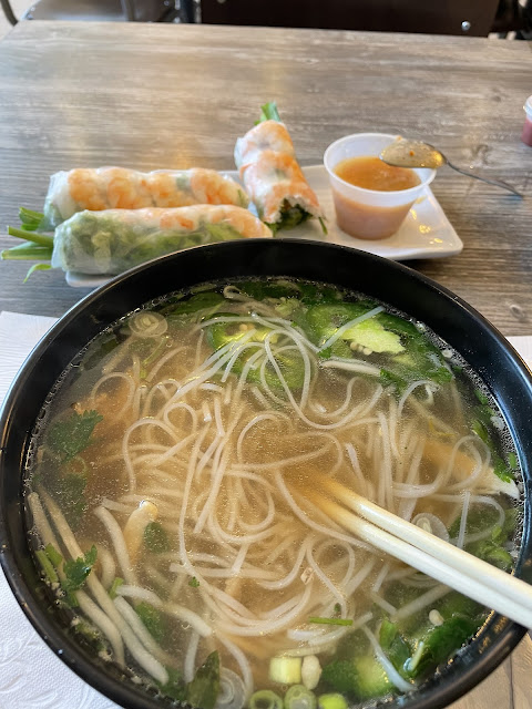 We came here to get takeout for the family, a simple order of a pho, a banh mi sandwich and two spring roll appetizers. When we got there, there were people sitting at tables and similarly, putting in to go orders.