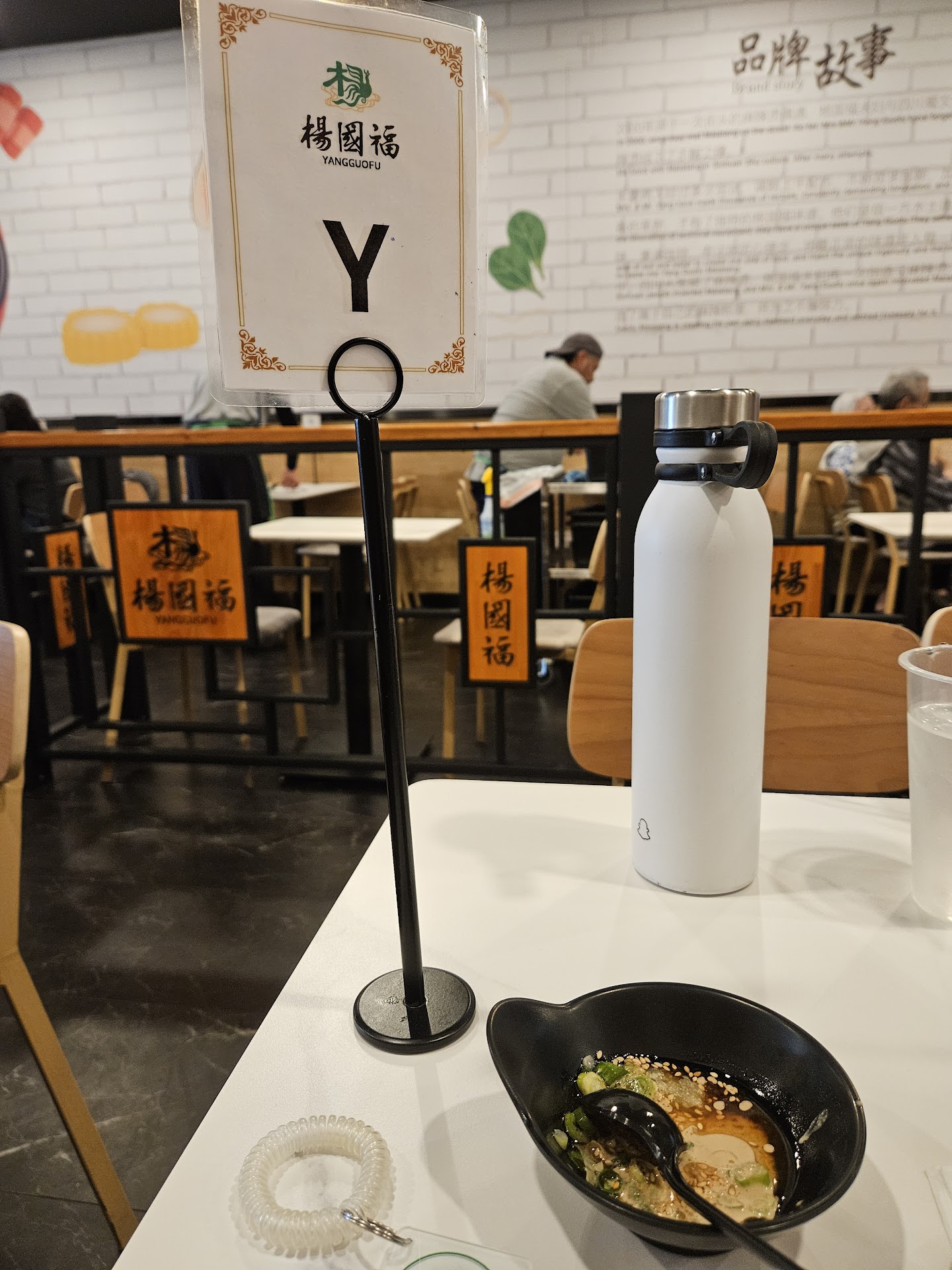 After choosing, you give it to the employee to weigh and choose your soup. After that, they give you a key tag with your bowl number. You can also order their drinks and other side dishes here. I got the tomato broth since it is the only non-spicy broth and I wasn't sure how mild their mild is. I also ordered the brown sugar rice cake ($6.5).