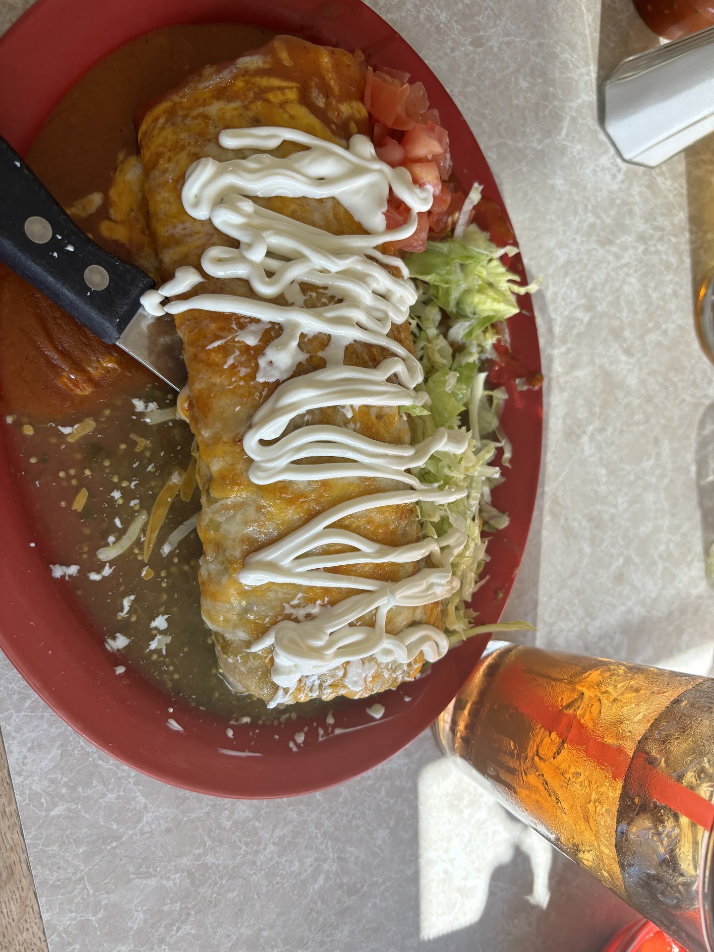 Menu extensive with ala carte and combos. We ordered taco salad and an enchilada chili relleno combo with bean choice black, good garnish but, no crema or avocado. Taco salad had a good amount of very good flavor meat and included tomato, avocado and crema. Good mexican cheese with relleno made with poblano pepper and enchilada with Mexican cheese. We used the sauces on our food and we finished it all and...