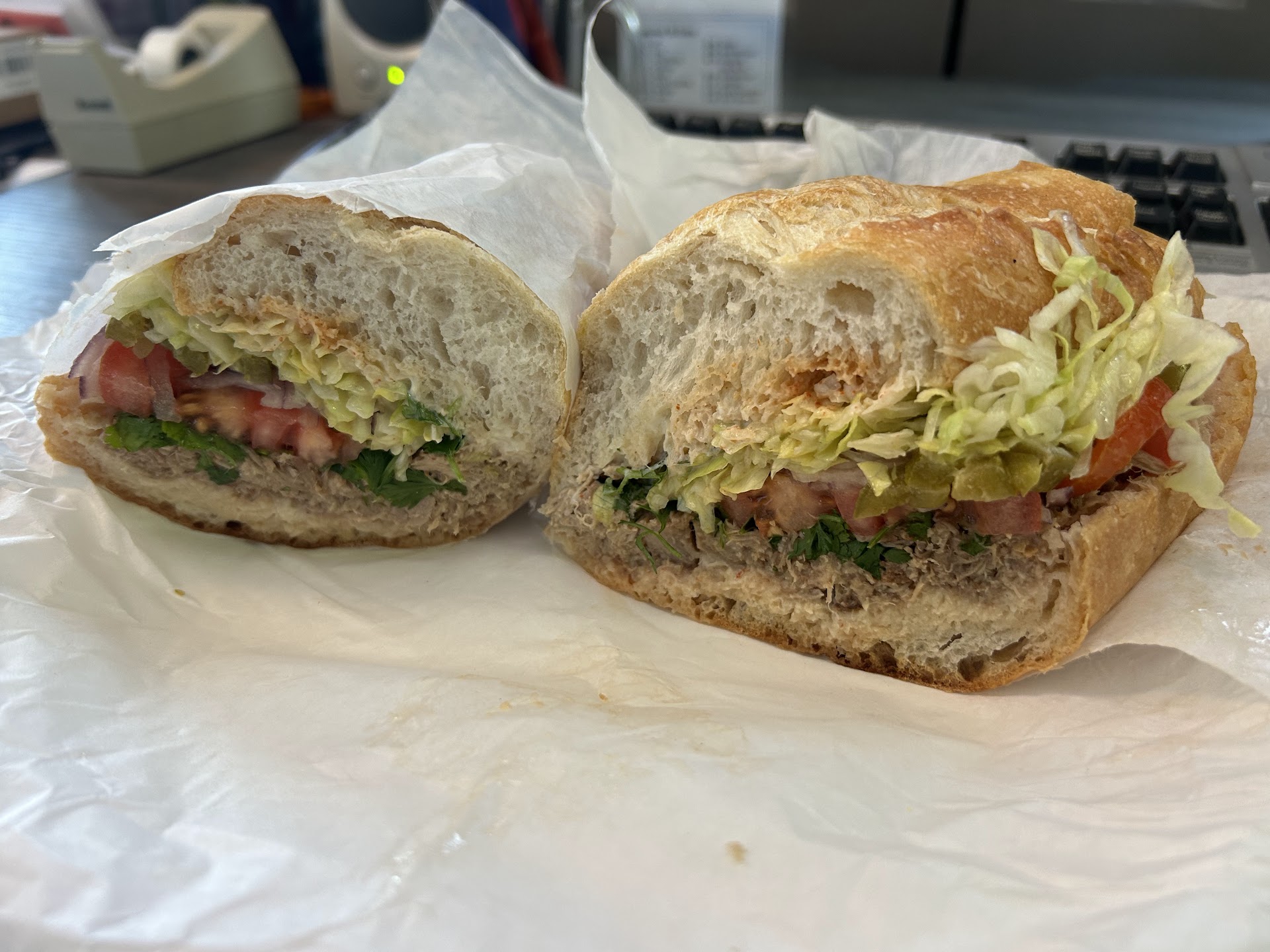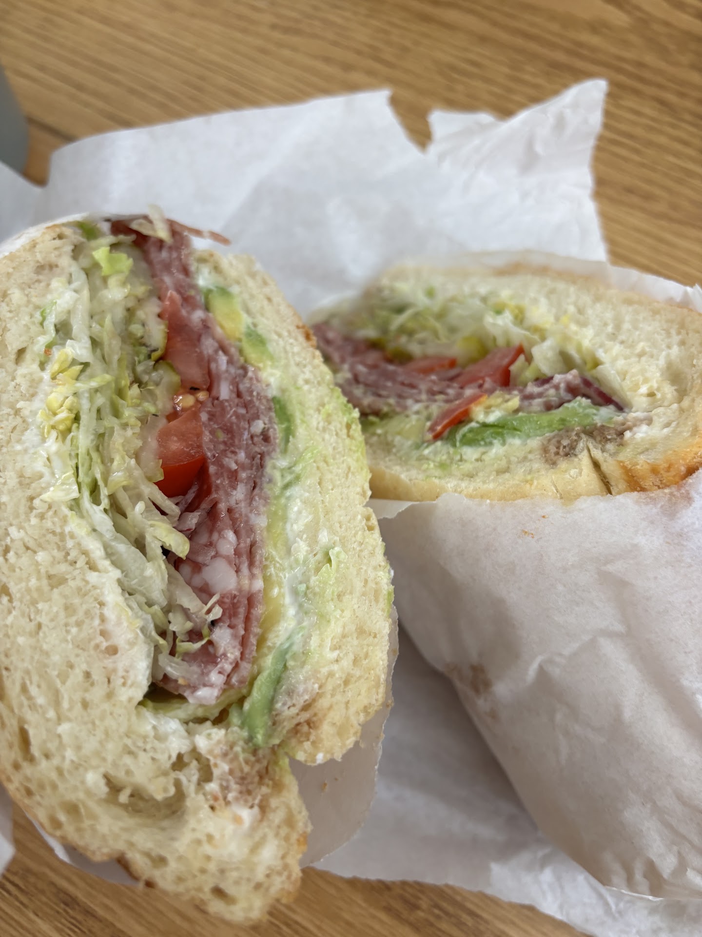 Finally today: my wife and I went in. Again busy day, no problem, I’m used to that at this point. To my surprise one of the workers actually offered to get some sandwiches going while his co-worker helped a large group in front of us. I thought this would speed up time... but no. This employee took longer to make our two sandwiches than the other gentlemen did to make 5 sandwiches and ring the customers up. The guy asked me my order 3 separate times after seemingly going to the back to make the sandwich. They again were out of “all rolls” and so they only had sliced bread which was not great and tasted stale. He forgot the cheese on my wife’s sandwich. He put whole stems of cilantro in the sandwich, he put hard avocados on my sandwich to the point where I took them off. Finally he cut our sandwiches into these small triangles so that all of the ingredients fell out and pretty much turned into salads. This order cost me $30 and o barely ate the sandwich it was so bad.