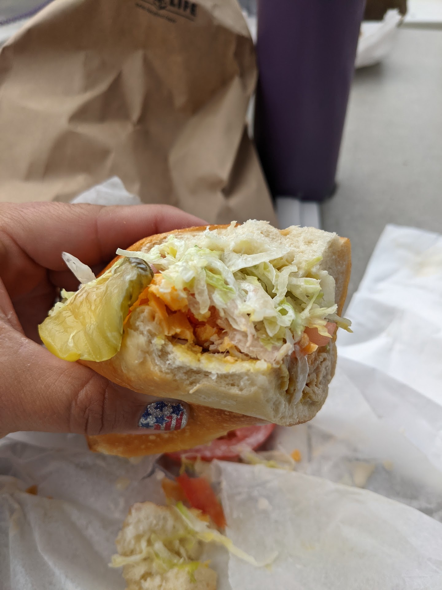 Read moreThey don’t wear gloves. I went in looking for a nice lunch, and was greeted by a kind woman at the register. She had just finished handling the payment of the customer in front of me. She took my order and rushed to the other end of the counter and proceeded to manhandle the sandwich with her bare hands. I couldn’t help but be grossed out as she proceeded to stuff the bread of the fillings with her greasy, dirt filled nails. I asked if they ever wear gloves, she just said no. I couldn’t help but think, that’s nasty… nasty regardless, but in a pandemic!?!! Even more so! I felt uncomfortable knowing I no longer wanted to eat this, but payed for the sandwich. It was unfortunate because that was super expensive for a sandwich shop to begin with, but especially because I felt that the sandwich wasn’t even sanitary enough to eat. I asked around if anyone wanted it, they didn’t. I threw it away, and will never go...