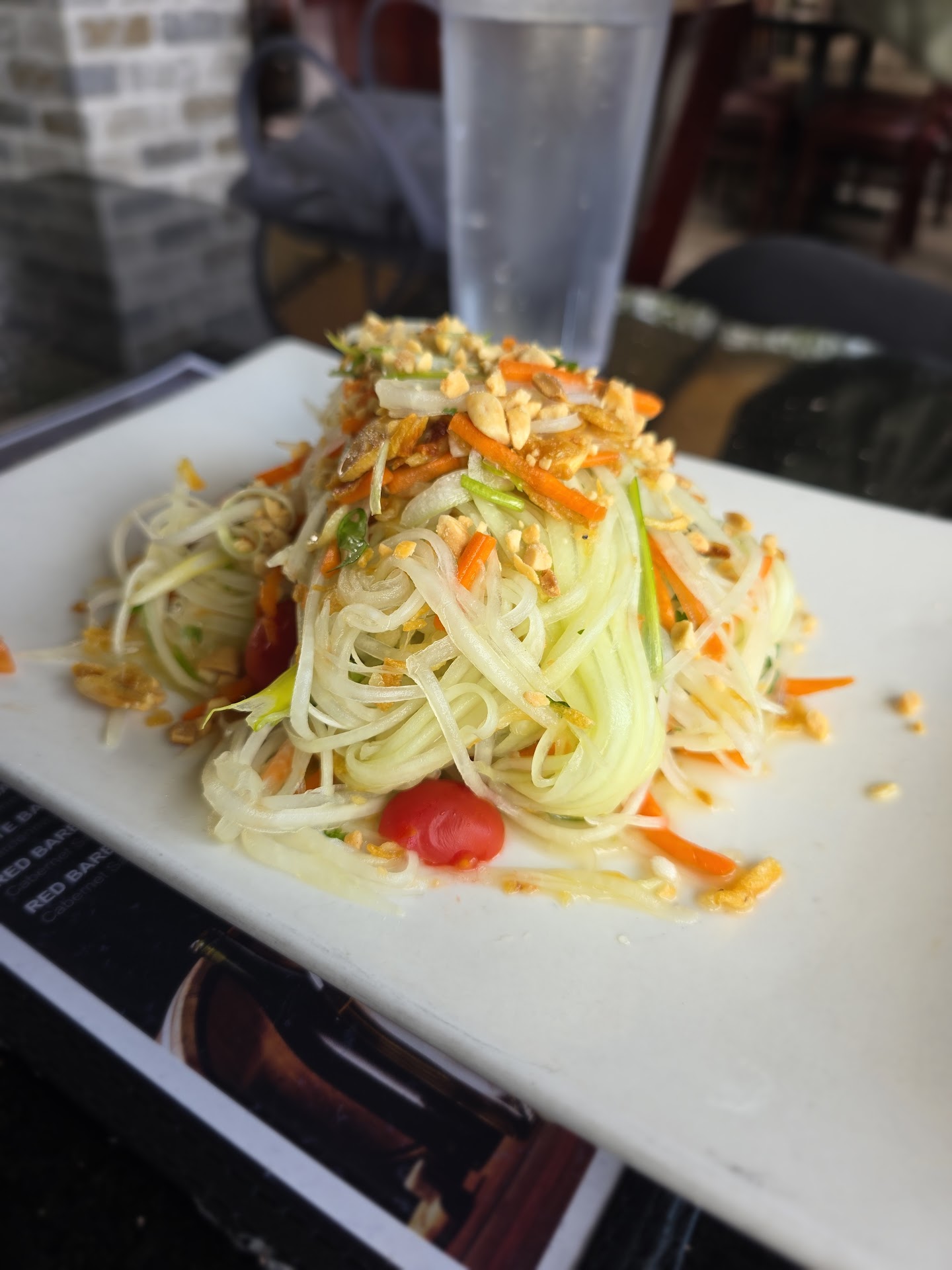I decided to go with him, and after we ordered, our drinks this time never made it to the table. I was not so impressed by the customer service, but I thought maybe they are very busy and it was an honest mistake. Our orders were okay, I was very scared to order anything so I just got the fresh spring rolls because I can at least see what’s in it. He got the usual order yellow shrimp curry. Because he is a pescatarian. No meat.