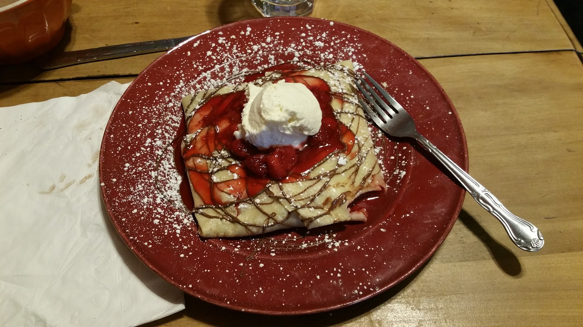 Read moreNice little find! The place was jammed packed on a Saturday and we only had to wait about 10 min. We split a savory and sweet crepe with a mocha on the side. They serve the mocha in a BOWL!! It was huge and tasted delicious. We got the “Amaber rose” savory crepe. It was good but I wish they used a different type of bacon, it was thick and hard and some huge pieces in it. I think if they used a thin crispy bacon and cut it up more it would have been more enjoyable and easier to eat. The sweet crepe we got was the special “summer kiss” it was absolutely amazing! I could literally eat 2 of them!!! Our waiter was nice but wasn’t very attentive. We had to ask several times for our waters to be refilled. Also by this time it wasn’t busy so I’m not sure why we were on the back burner. But other than that the food was good the vibe was nice(it is a little loud in there with the...