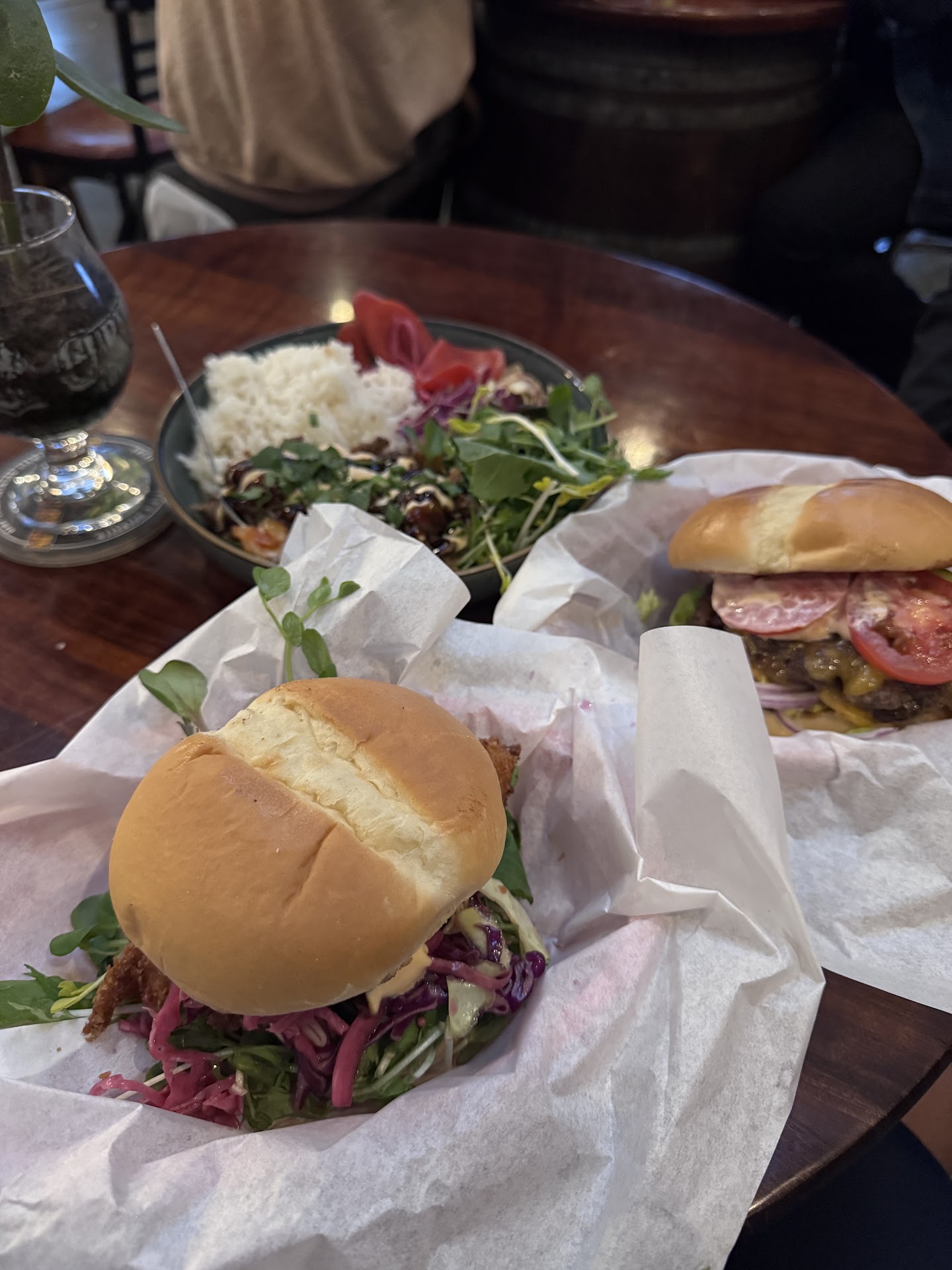I had the Moo Shoo burger, but got a substitution for the wagyu beef patties from the smashburger, instead of the pork-at no extra cost! It was absolutely amazing! It was by far the most delightfully messy burger I've ever had the pleasure of enjoying, dripping sauce and juice all over the plate-which I just sopped up with the bun as I ate it. I normally do not care for pineapple, but this was perfect, and just the right amount of firmness so that it didn't squish out of the bun, but was not hard to bite through.