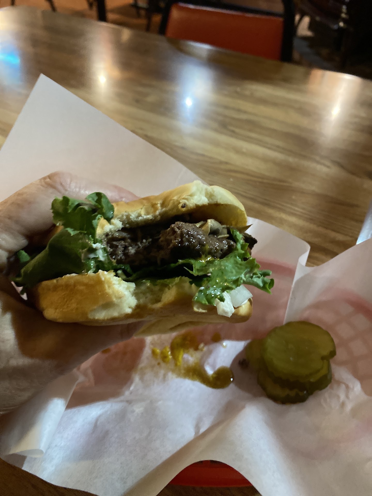 I entered the restaurant at 7:30, and already all of the chairs were put up leaving nowhere to sit. Myself and another customer (the only other people besides the employees) placed our orders and the cook was visibly upset that I had ordered. I was told that I had to take my burger to go, despite the hours listing the store as open for another thirty minutes.