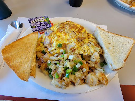 Review #2 I went with a family member a couple of days ago! I had a 4egg HAM & CHEDDAR omelet. Couldn't finish it! To much food. The Real chopped up potatoes homefries with peppers onions and cheese sauce were to die for. Not even to mention the NEW WAITRESS was remarkable with attentiveness, friendly and fast. This place seems to have been a local secret. Well I'm letting the cat out of the bag! If you old school like me. You gotta go see and try this food and atmosphere! DONT LET THE OUT OF TOWN CHAINS GET YOUR MONEY. OH DID I MENTION THEY...