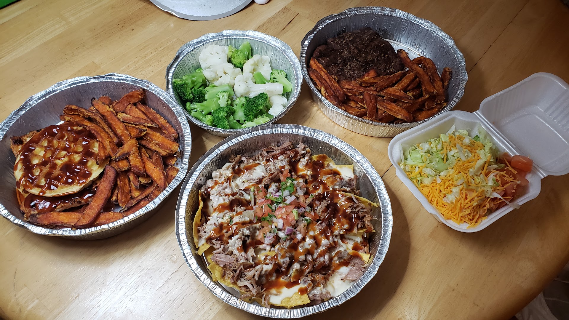 I ordered a veggie wrap with waffle fries. While the wrap was decent, it was overpriced for what was clearly just canned vegetables. The waffle fries were good, but honestly, it’s hard to mess those up. My boyfriend got the barbacoa tacos, which he found to be dry and bland. When he tried to salvage them with salsa, the salsa was bitter and watery.