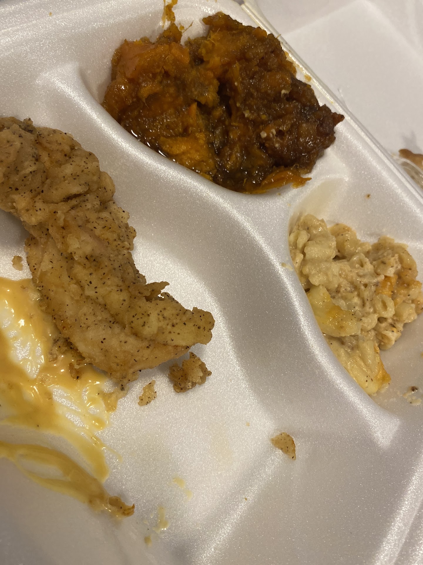 My friend got the chicken pie, yams, and mashed potatoes and gravy, and a roll. He left me try the chicken pie and it was so good! He really enjoyed the food as well.