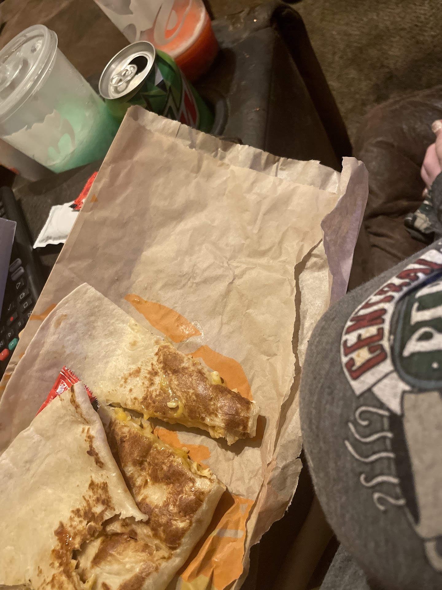 Also⊠orders are almost always wrong, wrong sizes, wrong drinks, if theyâre mad you can tell as they skimp out on toppings (I got FIVE potatoes in my potato only crunchwrap. Didnât know I was paying for air!!!)