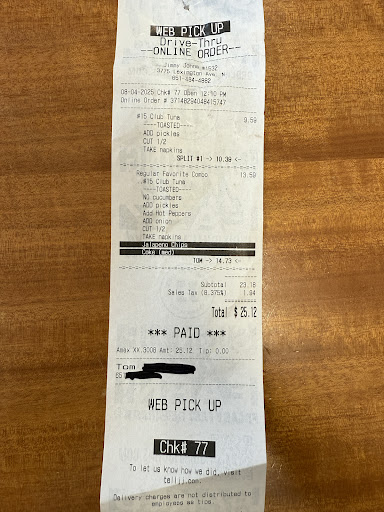 When I arrived I was immediately greeted by someone and I said "pick up for Tom". He looked at the tickets on the pending order line without luck and then I said "2 tuna sandwiches" which help him locate it. I noticed that it was at the very beginning (new order) of the many pending's in line. I thought that was odd. I sat down and waited..and waited. I noticed that people would come in and order, their tickets would be pick up and moved from the end to near the front of the line. I then noticed that the older white bearded employee who helped me initially came back and noticed I was still waiting. He pointed at the ticket and me and then it looks like they only then began to prepare my sandwiches.