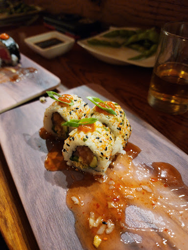 Read moreLoved the sushi, got the lumberjack, June bug, and the red devil. All of them were great, the June bug was my boyfriends favorite very fresh tasting and delicate but still flavorful. The lumberjack was mine so rich and decadent, smoky sweet, and the good kind of fatty that comes with good salmon. The crushed pistachio on the red devil was a very unique flavor super toasty and nutty. Thr crab cakes tasted like fried crab rangoon filling and I loved it, the miso soup was delicious. We got complimentary edamame but it was cold, i wish it was served hot. The creme brulee was also fantastic. The atmosphere was also great and so was the service. We found a piece of paper towel on one piece of a roll and the server was apologetic and comped one of our teams. Over all a...