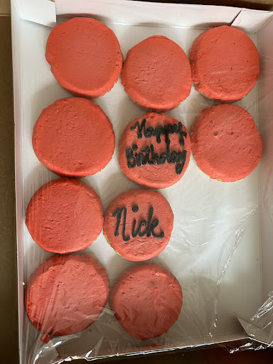 Read moreWe received a cookie delivery for my husbands birthday. We were shocked to open the box and see the very odd color frosting they selected. The cookies were delicious but were uneven sizes and thicknesses giving more of a home baked feel as opposed to a professional bakery. In addition to the oddly orangey pink sugar cookies we received a sleeve of Oatmeal cookies. The cookies within the sleeve were crumbles by the time we received them. The sender of this gift would certainly be horribly disappointed if I ever dare tell them what we received.