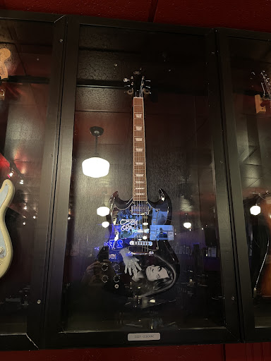 We were glad once again that it was during a lull, because the decor was fun to explore before we left, with many, many signed guitars and pictures of many musicians from different genres and decades.