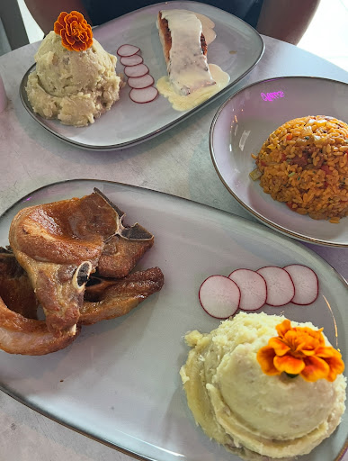 Mi esposa ordeno pechuga con mampostiao. Ell mampostiao es mapostiao deverda'. No podia creer lo bueno que estaba. Detesto cuando en un menu dice "mamposteao" y lo que traen es un arroz junto palido y soso. Pero el de este lugae fuera de liga. La pechuga estaba muy buena con salsa criolla, y los amarillos por el lado aparte tambien buenos, todo rico en general.