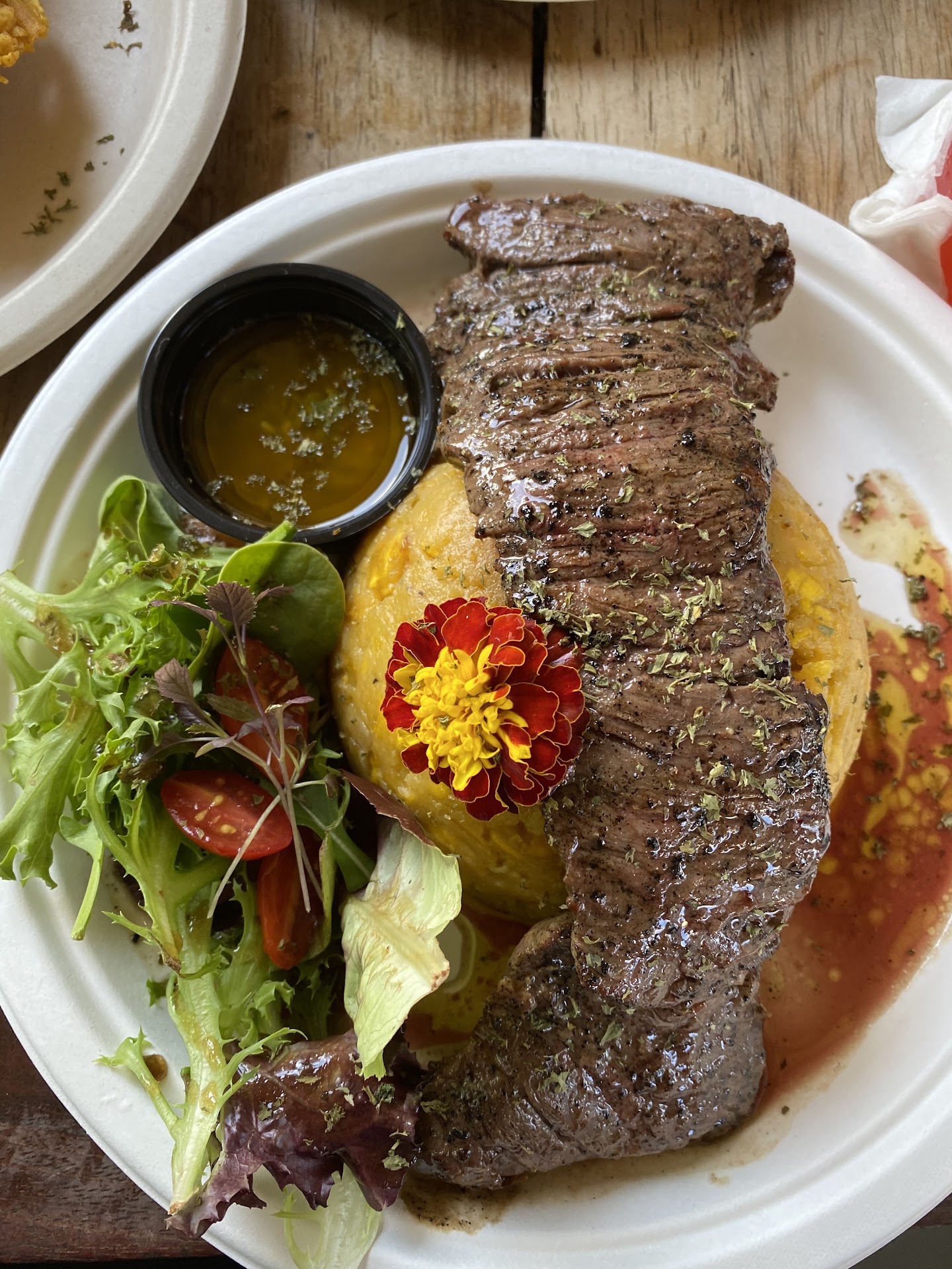First, the music was far too loud for a restaurant setting, making conversation—and even ordering—difficult. More concerning was the server’s lack of understanding of vegetarian options. After carefully discussing the menu, we ordered a variety of sides, including arroz mamposteao, which arrived last. By that time, we were full and decided to save it for the next day.