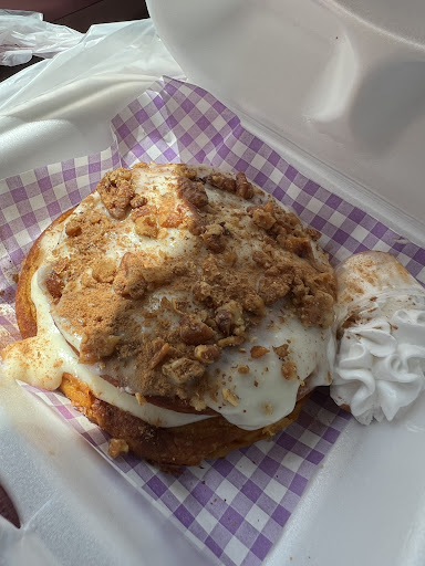 Me encontré con este negocio agradable con una pareja de jóvenes serviciales y humildes. Fue bonito ser recibido con una sonrisa enorme en un día sumamente caloroso. Quise ir a probar el pancake de temporada de calabaza. Me sorprendí porque me entregaron mi orden sumamente rápido. Quisiera dar elogios pero no fue de mi agrado. Lamentablemente los nueces estaban dañados y los pancakes muy crudos. La proyección del pancake muy agradable aún siendo take out. Quiero ir de regreso para darle una 2da oportunidad porque me agradaron ellos. Los precios...